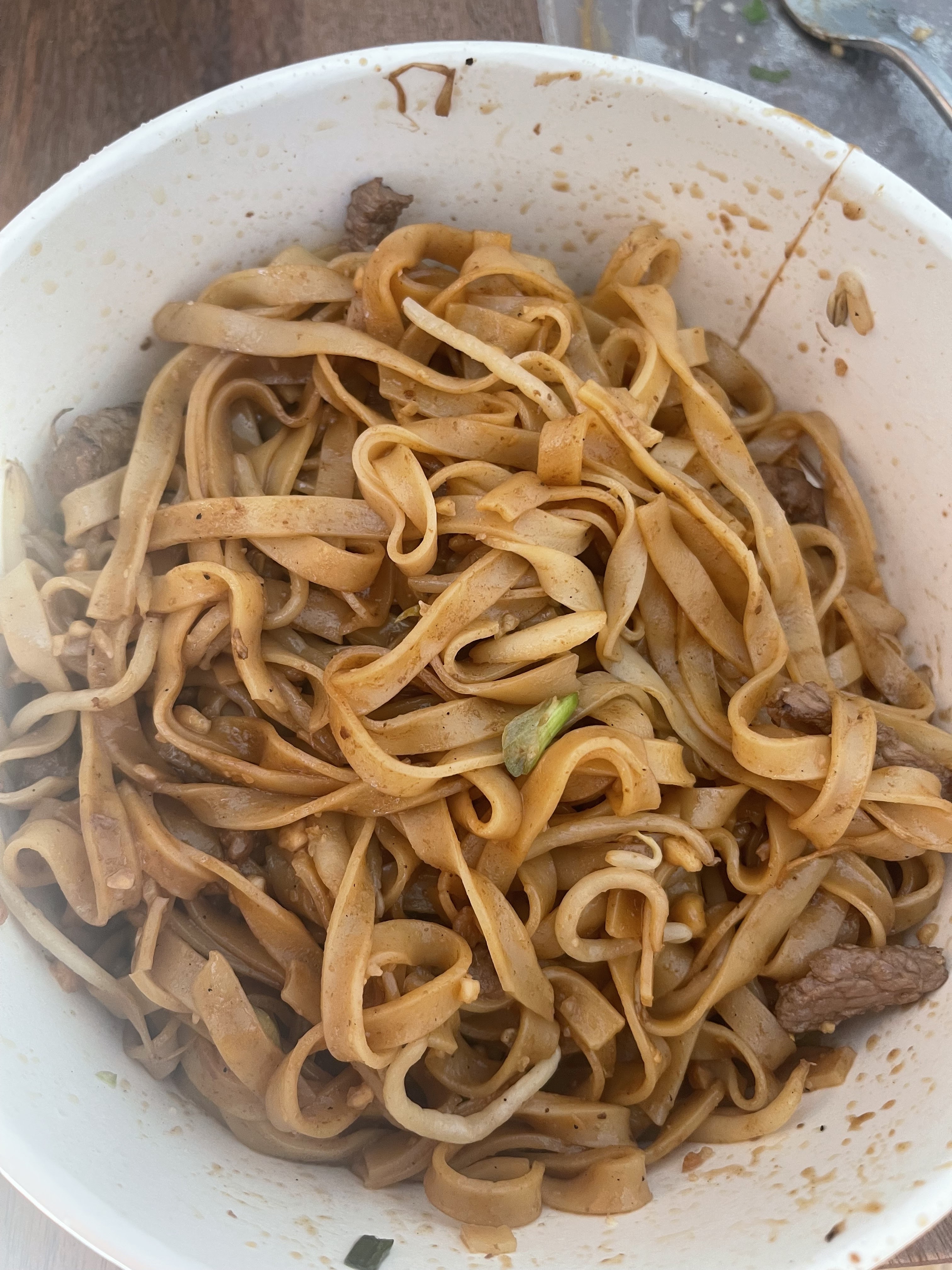 Commande de Padthai. Ca na rien d’un padthai. Juste un bol de nouille collant, difficile à séparer et à manger, avec quelques tiges de soja et 3 miettes de protéine. Total 18€… du vol. Plus jamais!!! Une vrai blague et une immense déception…