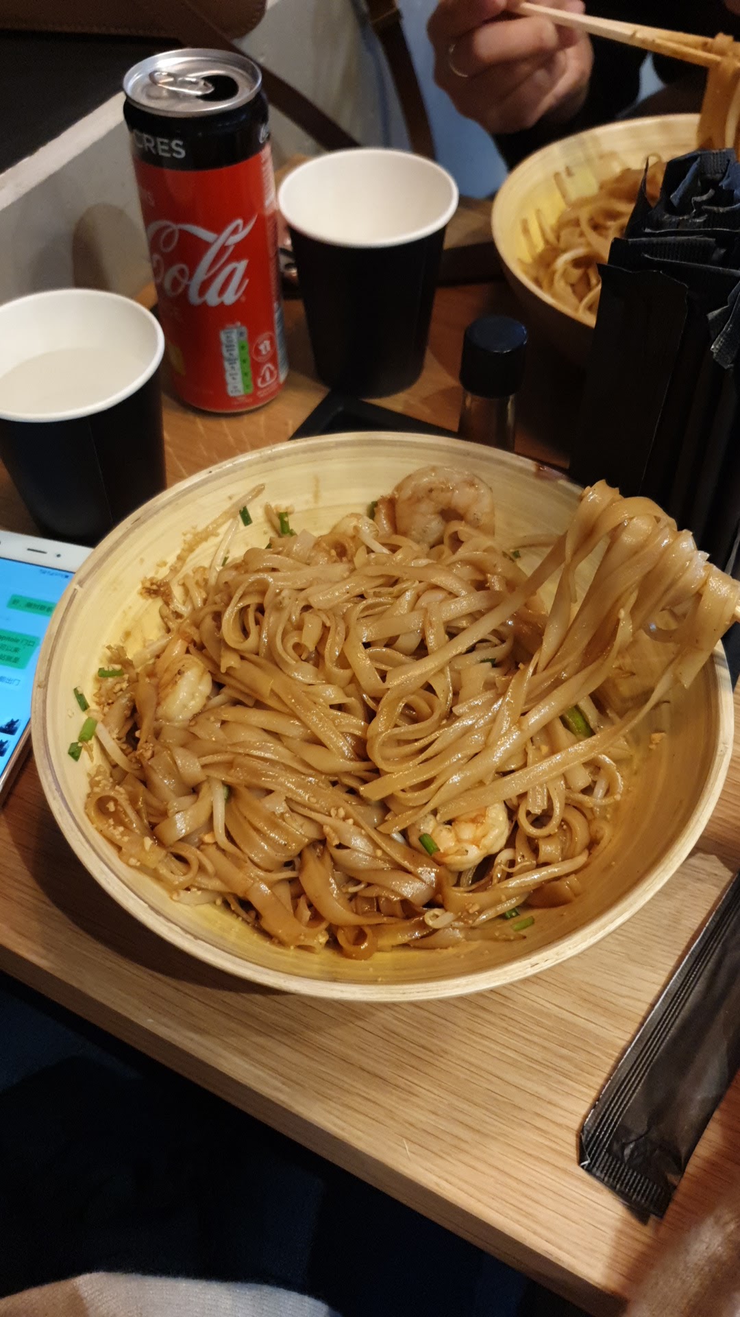 Pas Thai aux crevettee. Il manque un peu de piment pour remonter les saveurs 😉