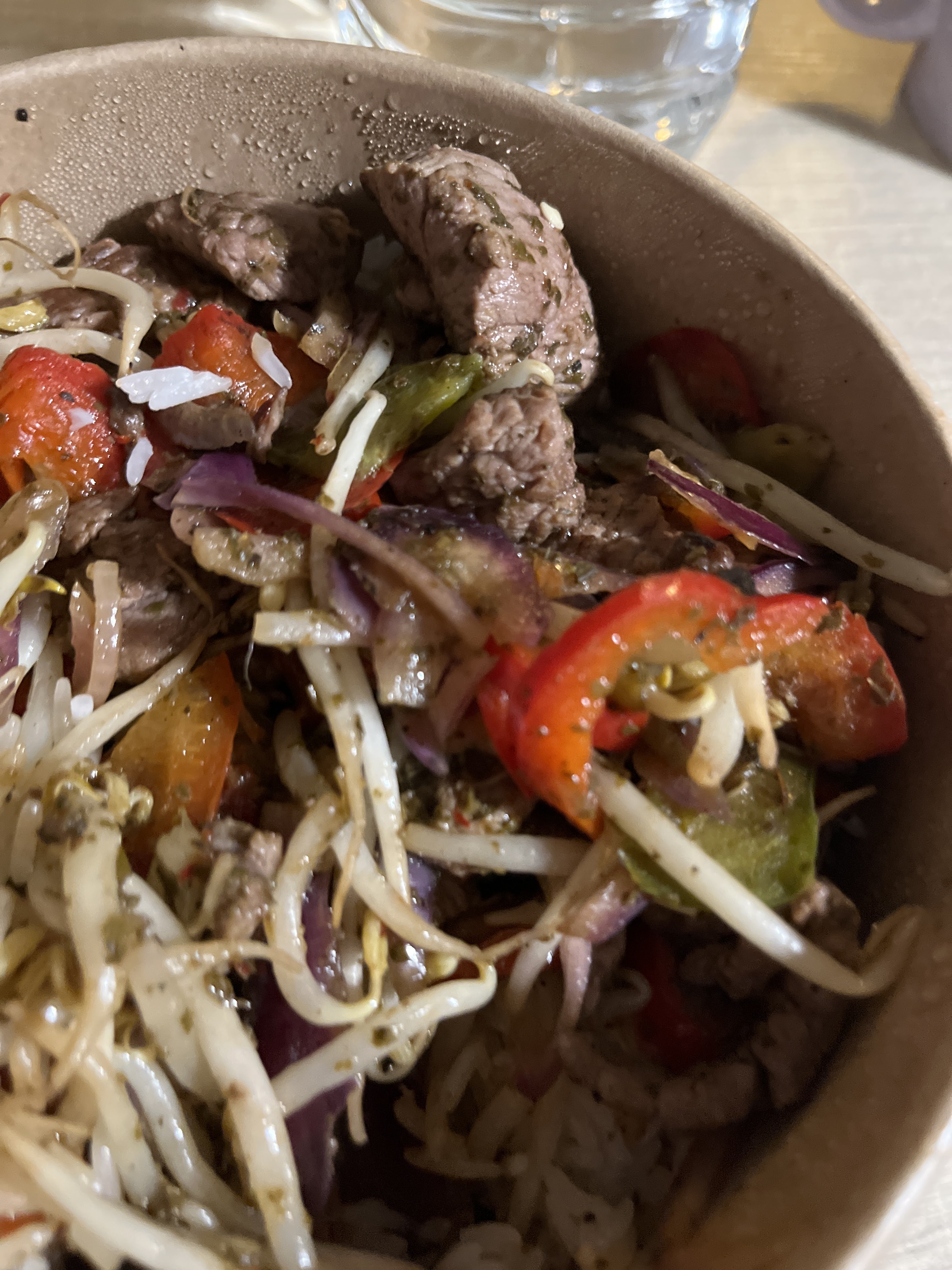 Bo bun n'ayant que le nom. Trop de sauce donc goût pas terrible, pas de petits nems en petits morceaux dessus. Du fast-food pour se nourrir 😒