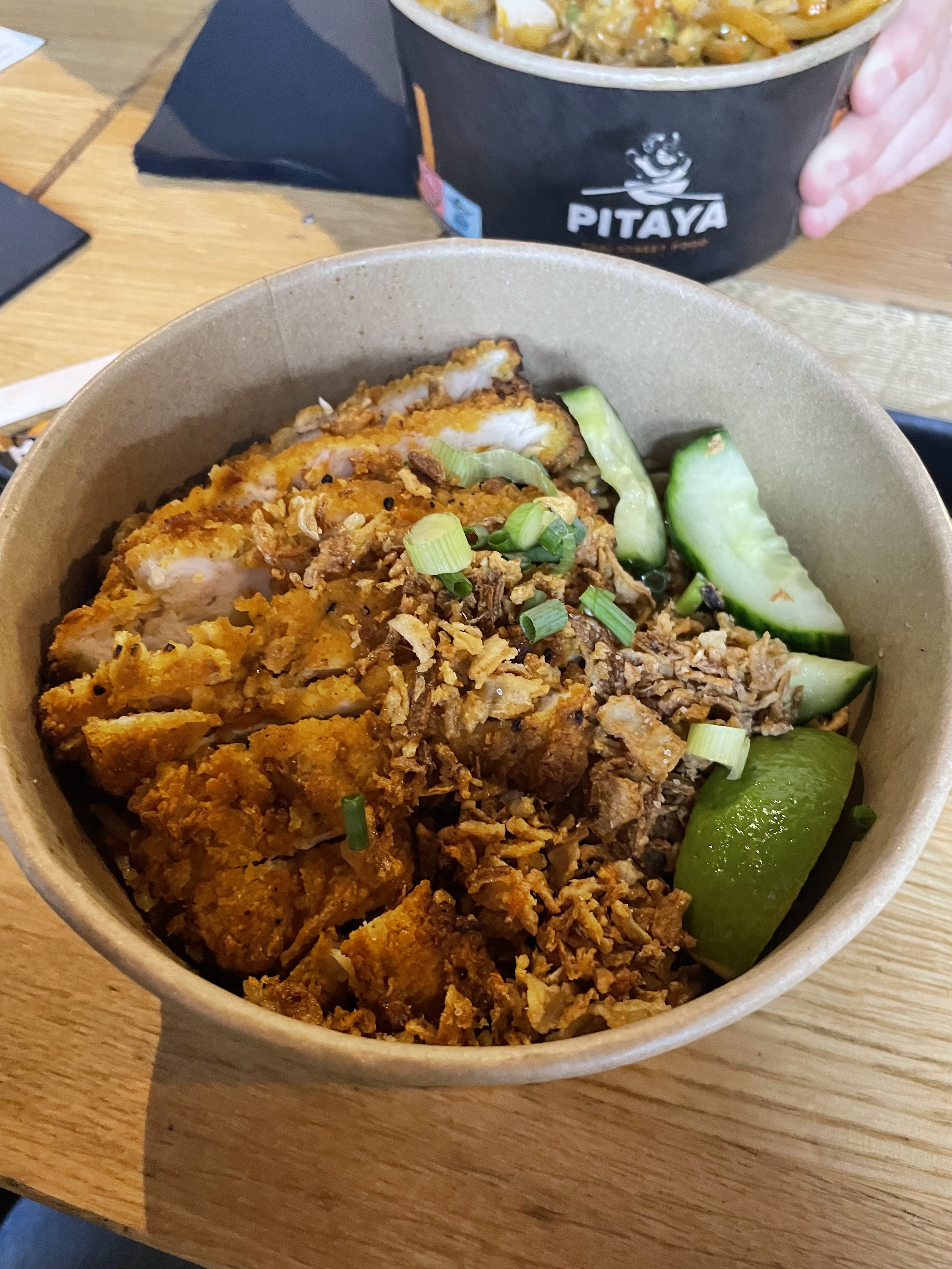 J'appréhendais un peu le concept de Pitaya, je craignais que ce soit un peu trop fast-food, mais j'ai été agréablement surpris ! J'ai pris un red curry je l'ai trouvé excellent, bien relevé sans être trop piquant. Tous les plats sont faits en direct, devant nous, c'est un gage de fraîcheur. J'ai réussi à terminer mon plat, mais je n'avais clairement plus faim, c'était très rassasiant ! Pour ne rien gâcher, le personnel est très sympathique et souriant, c'est agréable.