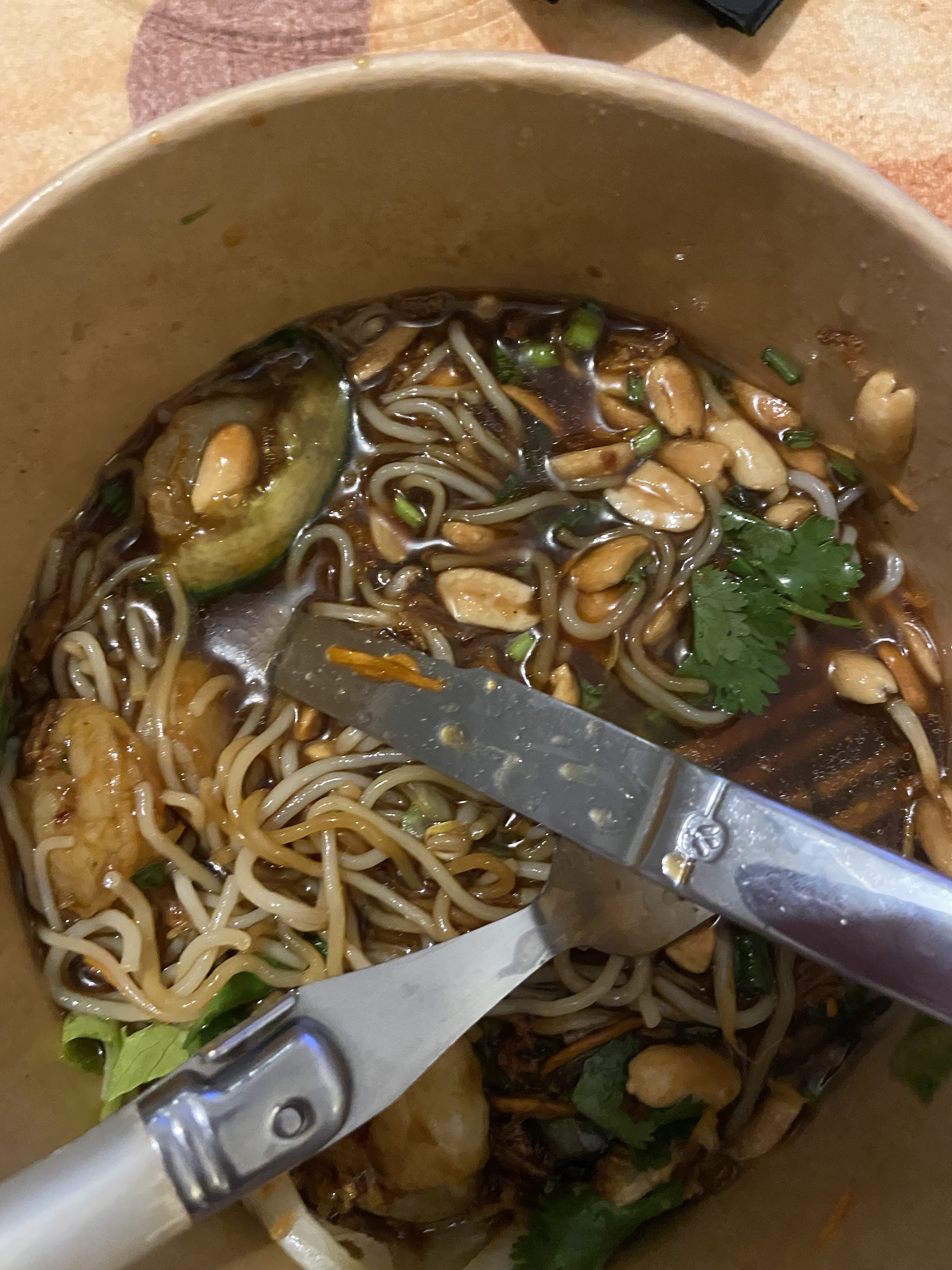 Commande Uber eats. C'est bon mais j'ai eu pleins de bout de je ne sais quoi carbonisé dans mon pad thaï... L'odeur de brûlé et l'amertume mon vraiment dérangé. Ce n'est pas normal de servir un plat pareil !!!! Faites attention la prochaine fois svp !!