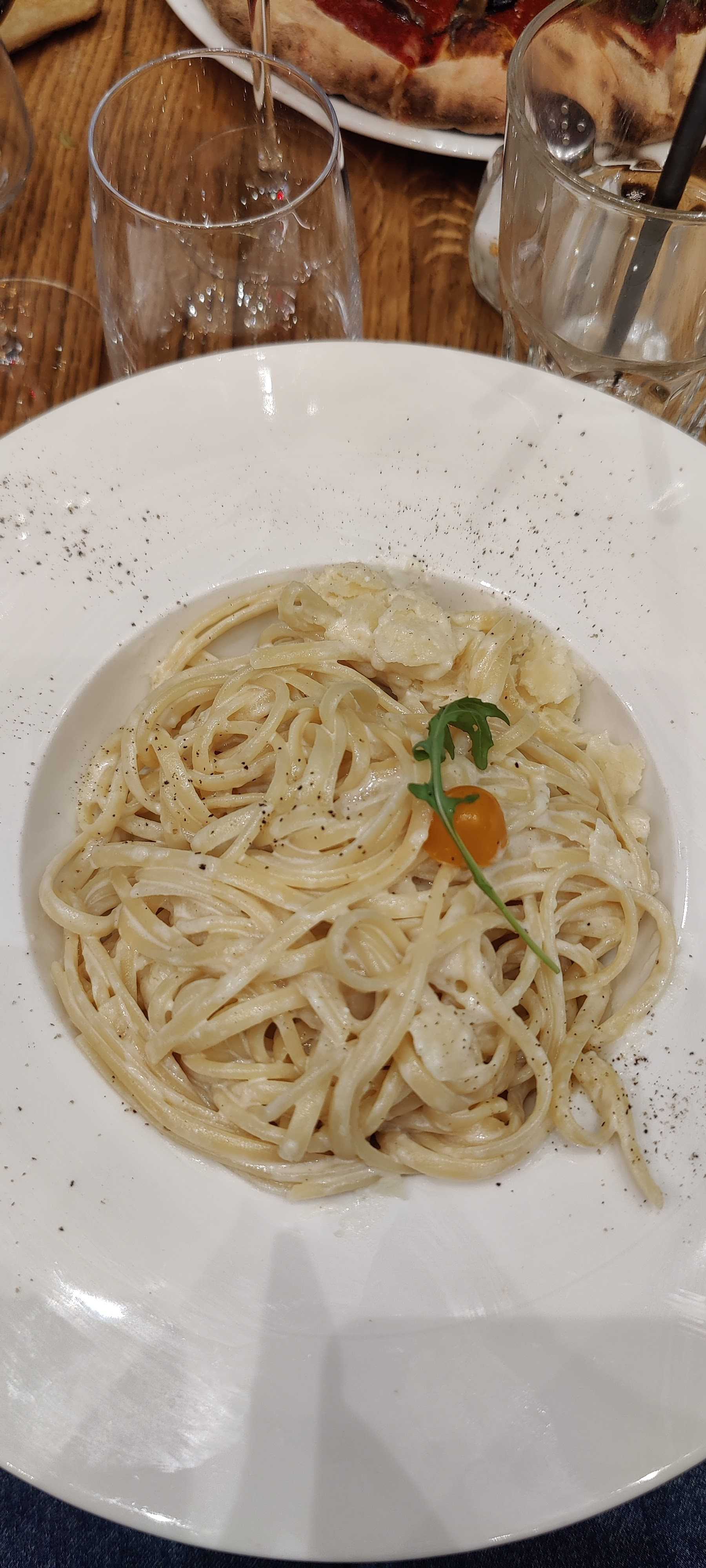 Le restaurant est très beau plutôt chic et mignon. L’ambiance et les musiques sont agréables. Tout les plats phares de L’Italie sont présent et très joliment servies. Je vous conseil pour un date !!!