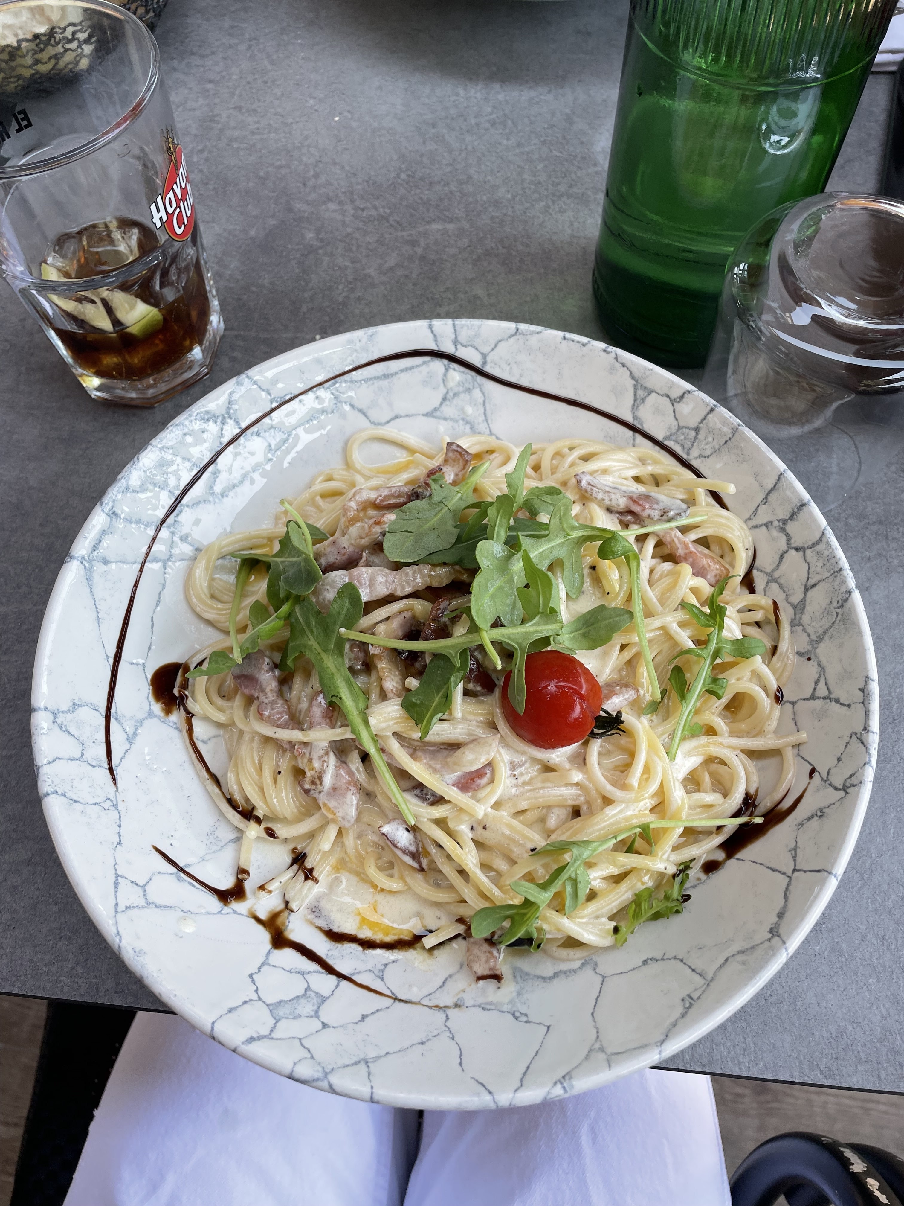 Très très déçue. Les spaghettis carbonara c’est tout de même la base de la cuisine italienne, j’espère qu’aucune italien ne viendra les goûter. Les morceaux de lards étaient énormes et crus, le guanciale c’est excellent mais quand c’est grillé et qu’il donne du goût à la sauce. Pour le coup la sauce c’était de la crème fraîche, avec des morceaux de gras en guise de lardons.. très déçue.. dommage