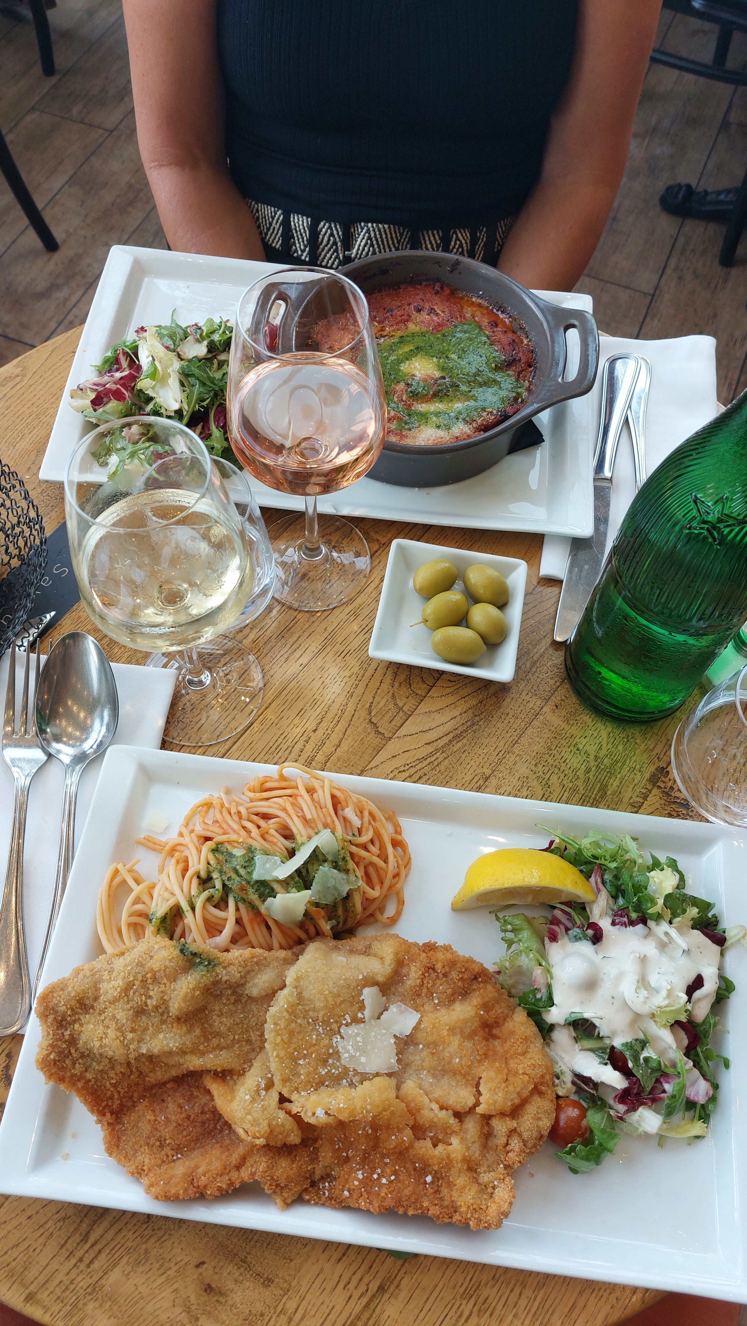 Bon repas dans l’ensemble, le personnel est très sympathique, l’ambiance est assez agréable. Les pizzas ainsi que les desserts sont très bons 👍 Cependant, au regard des tarifs pratiqués assez élevés (15€ / Pizza 19€ / escalope milanaise ou encore 16€ la salade) je dois relever l’escalope milanaise qui a sûrement été recuite car gorgée d’huile…. Ça se sent directement sur la friture quand ça a été recuit. Dommage car le morceau de viande en lui même était de bonne qualité et sans nerfs J’ai également trouvé que les plats sont un peu trop salés dans l’ensemble de ce que j’ai pu goûter.