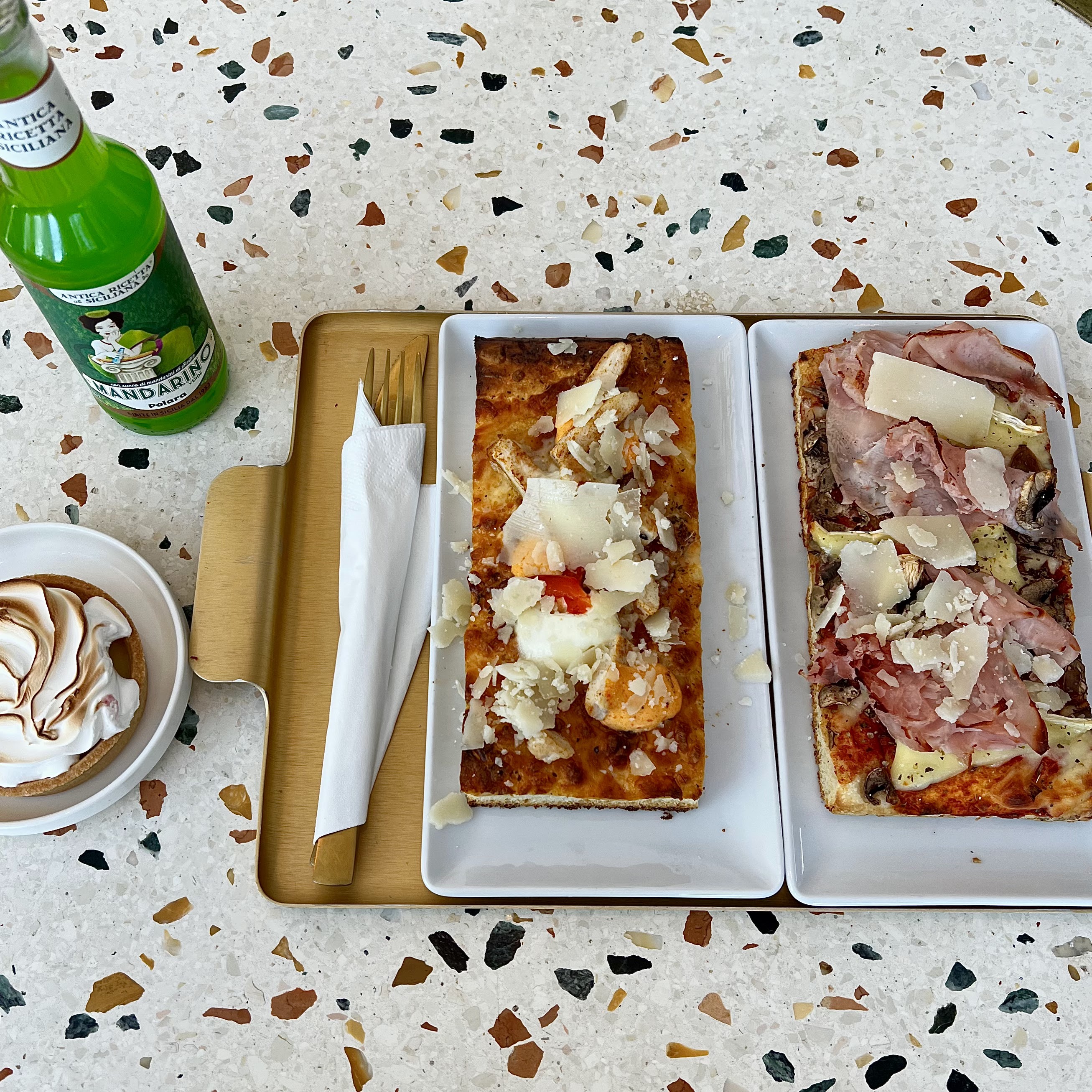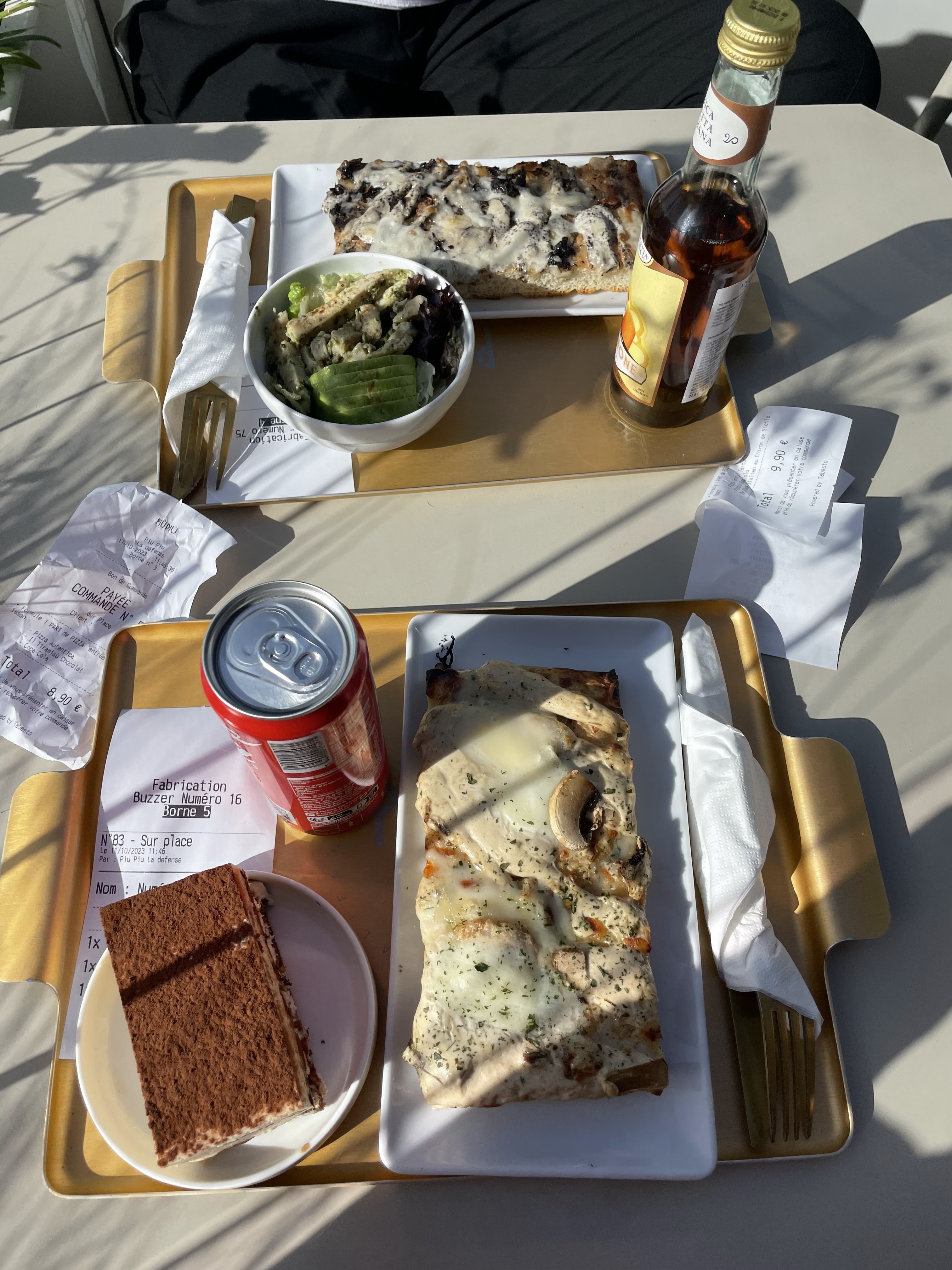 Pìu Pìu se définie comme de la fastronomie italienne, de la gastronomie fast-food. Ils vendent des pizza à la part qui ne sont pas trop chères. Sur la photo, une formule 2 parts de pizza, un dessert et une boisson pour 10,90€. J’ai choisi la Fantasia, avec du poulet et de la crème de poivrons qui est très sympa et qui la rend moins sèche. J’ai aussi choisi la Parigina, avec un bon petit jambon cuit, du brie et des champignons de Paris bien cuisinés. La pâte est croustillante et gourmande, c’était délicieux. Pour la boisson, j’ai pris une limonade à la mandarine, originale et rafraîchissante et pour le désert une tartelette citron meringuée. Ce sont de bonnes pizzas à la part, on repart sans avoir faim, un bon rapport qualité prix. J’ai aussi pris un espresso et surprise, c’était @coutumecafe, je ne vous les présente plus, vous les connaissez déjà. Concernant le lieu, Pìu Pìu se situe dans le socle de la tour Trinity, afin d’encourager les mixités d’usages voulues par Paris La Défense (on en parle d’avantage en visite). Le lieu est stylé, bien décoré, il a une très jolie terrasse. Le service est rapide, et les bornes de commandes aident à s’installer rapidement. Bref si vous aimez les pizzas à la part, c’est une bonne option que je recommande.