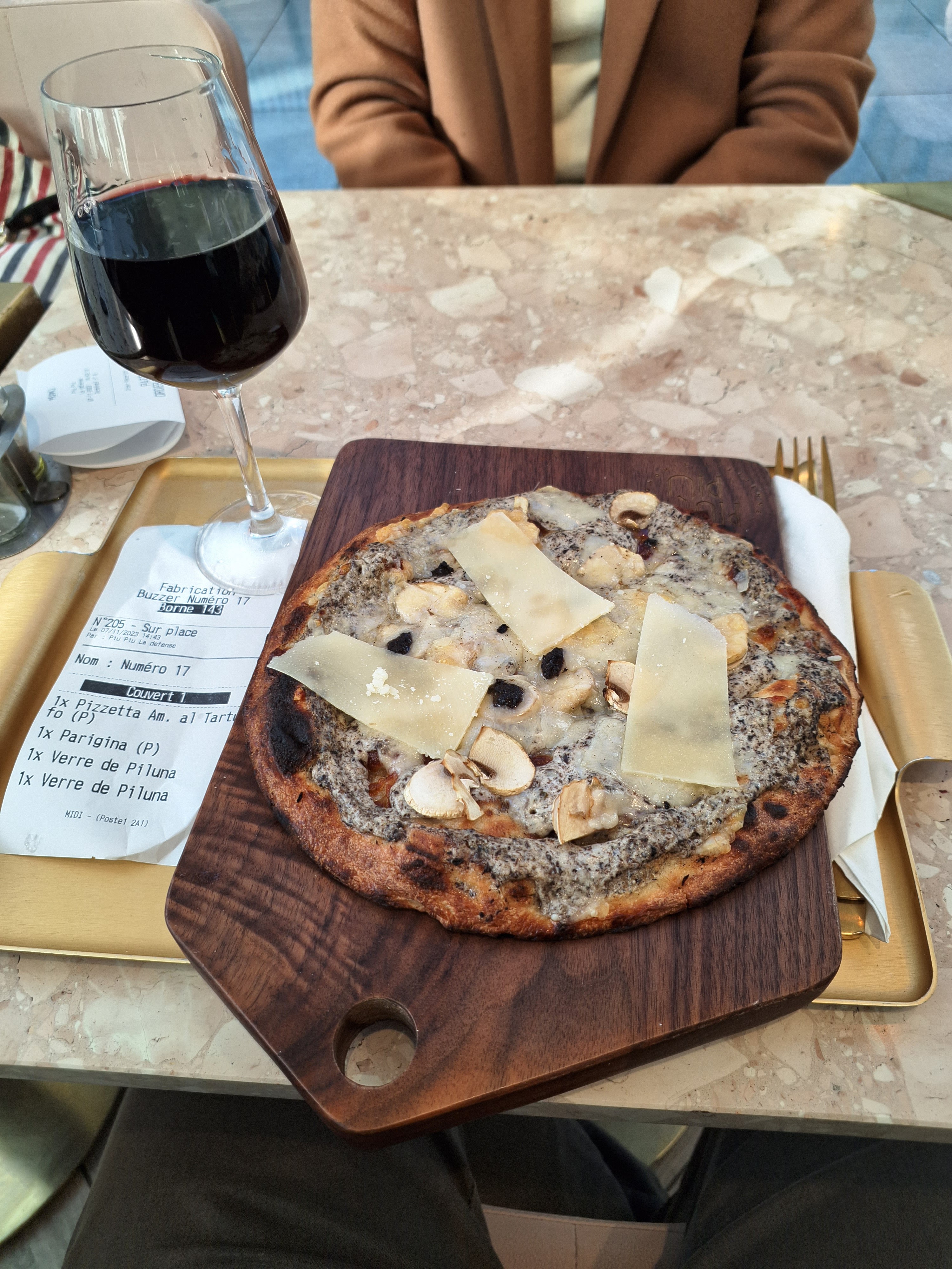 Super pizza et vin; totems pour l'ordre; ne vous attendez à aucune interaction en anglais avec les travailleurs, mais tout ira bien, ça vaut le coup