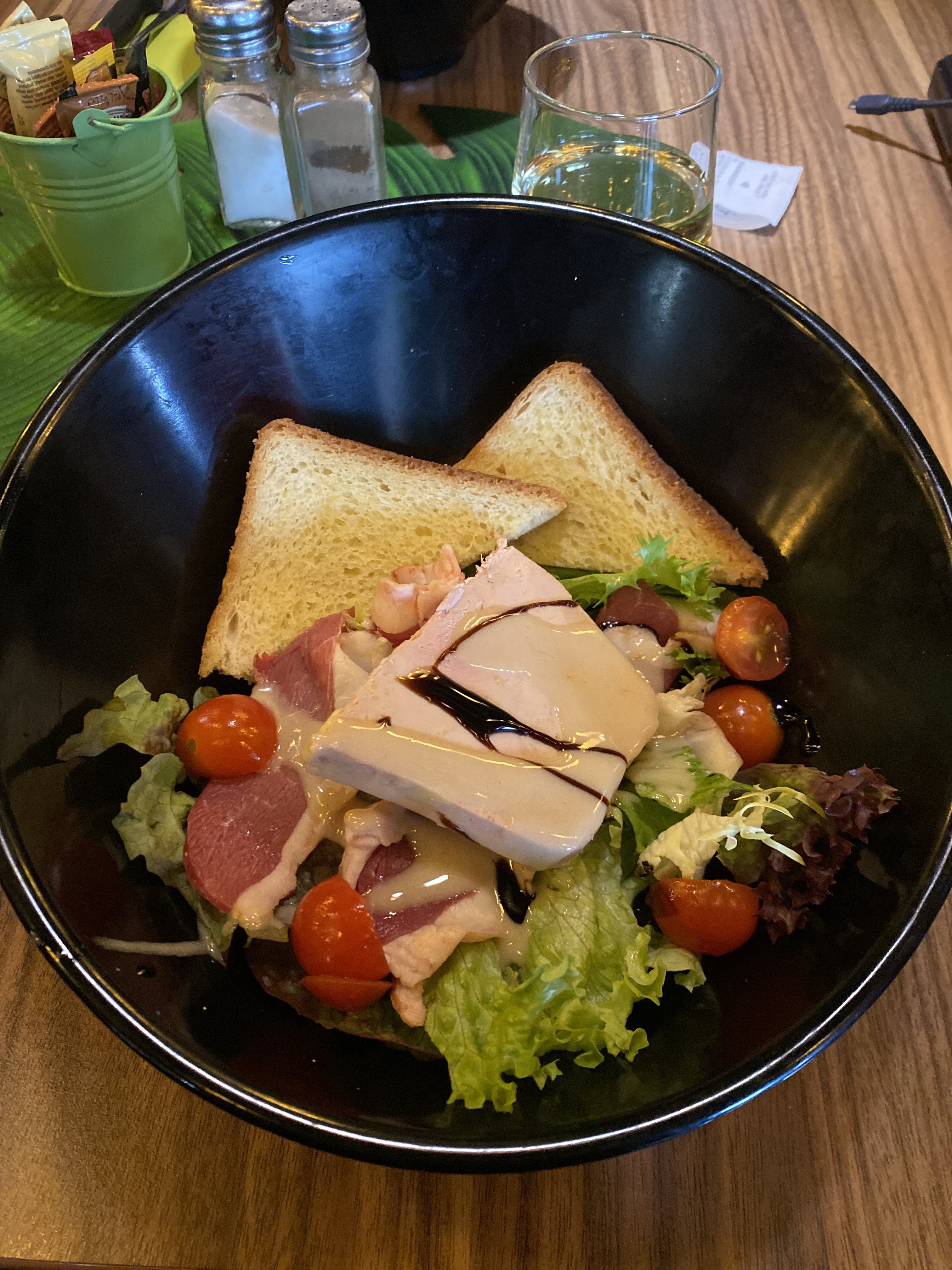 J'ai cru halluciner quand on m'a apporté l'entrée du plat du jour, salade composée qui consistait en 2 tranches de tomate, 2 tranches de mozza et 4 tranches de concombre, le plat principal était guère plus élaboré 😢