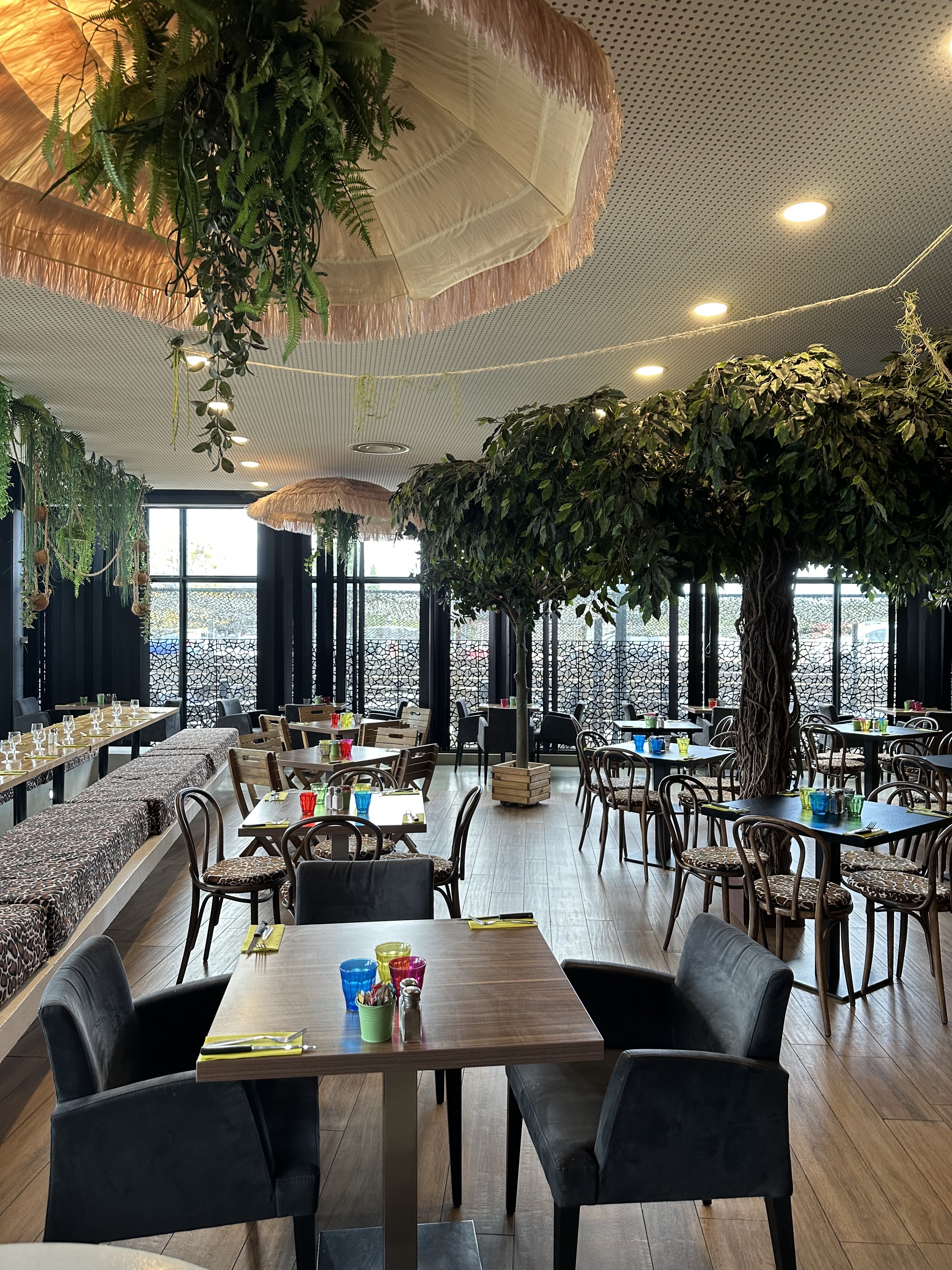 Un restaurant avec une déco jungle que nous avons bien aimé. Ça donne une ambiance au resto. Les plats sont copieux et bons. Ce que j'ai apprécié c'est que dans les menus enfants le cadeau est une figurine animale. Au moins quelque chose d'utile !