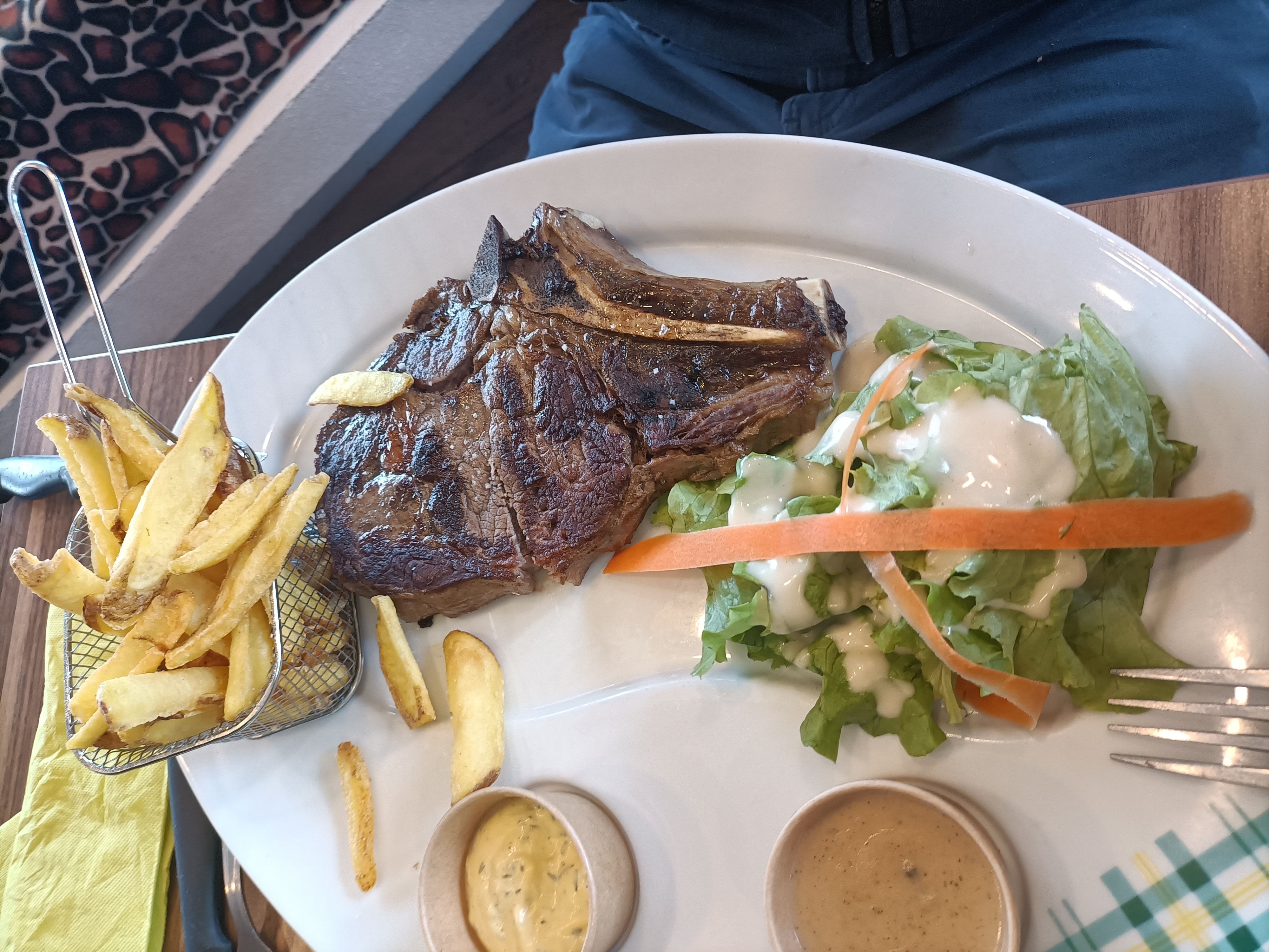1 étoile pour le restaurant qui est très joliment décoré et 1 autre étoile pour le serveur qui était sympathique. Cependant nous avons trouvé les prix extrêmement élevés, la qualité n'est vraiment pas à la hauteur des prix. Entrecôte mature 300 gr (28.50€) fade, sauce au poivre sans goût, frite pas assez cuites. Les pages des 2 menus que nous avions collaient entre elles, parcequ'elles étaient sales et tachés. Très déçu nous ne recommandons pas ce restaurant il est possible de trouver moins cher et bien meilleur.