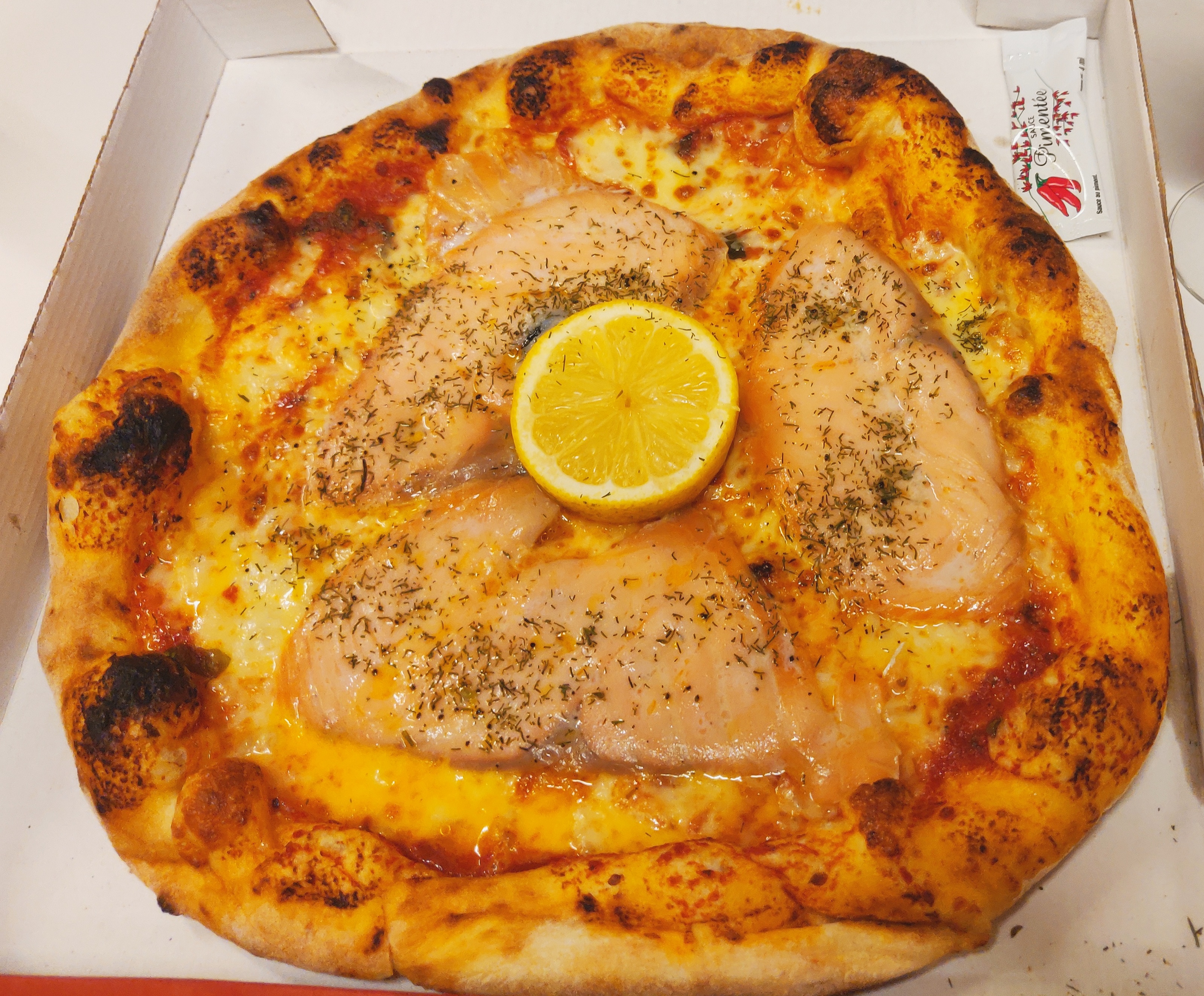 Pizza au saumon fumé, plein d’arrêtes,pas agréable à manger… Produit frais de bonne qualité mais je ne recommande pas forcément cette pizza …