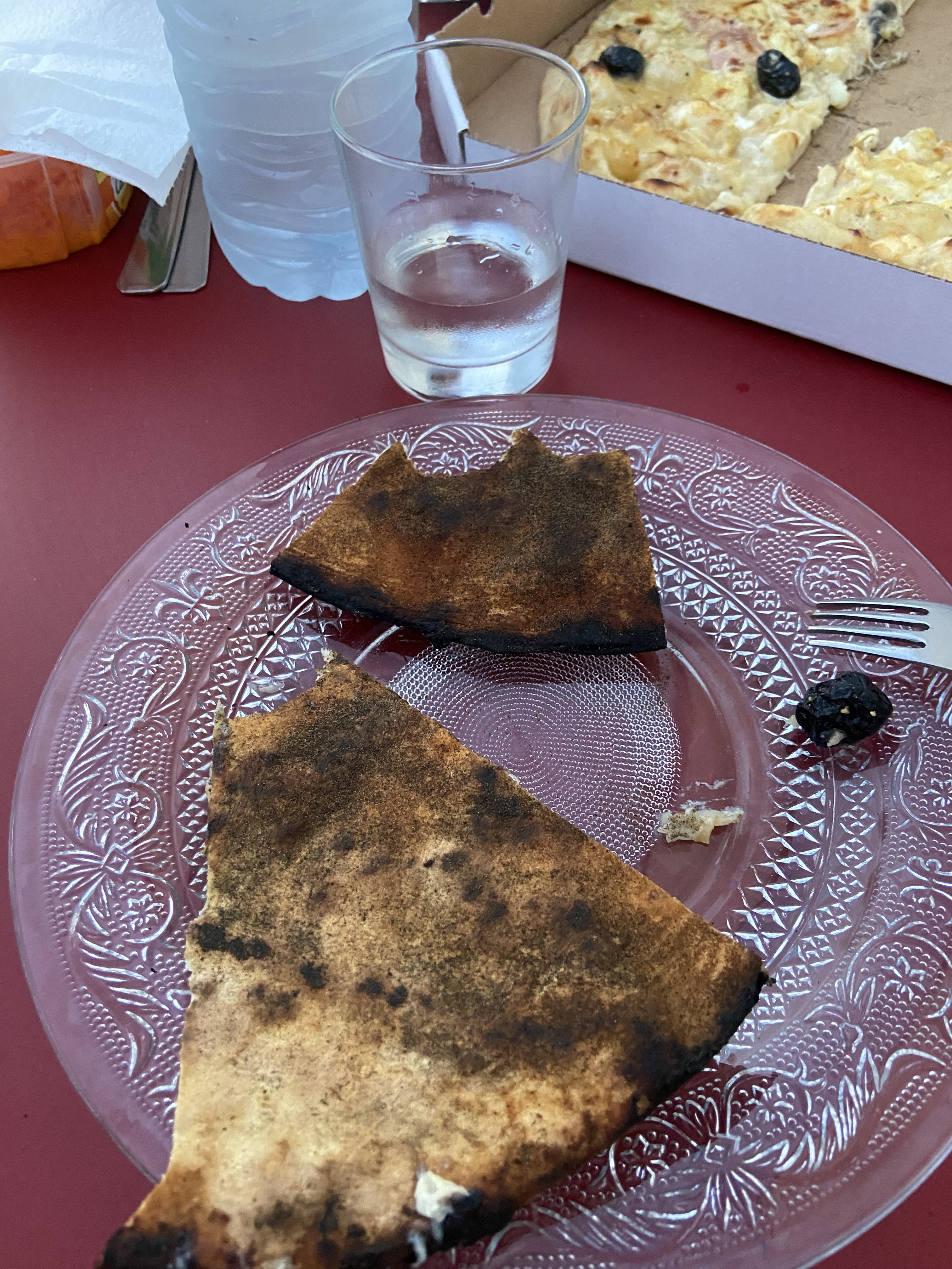 Pizza arrivée 45 min en retard (c’est ok, tant pis ça arrive)… mais carrément brûlée. Et oui c’est long de cramer une pizza. Bref c’est immangeable ça a juste le goût de cendre. 12 balles jetés par la fenêtre.