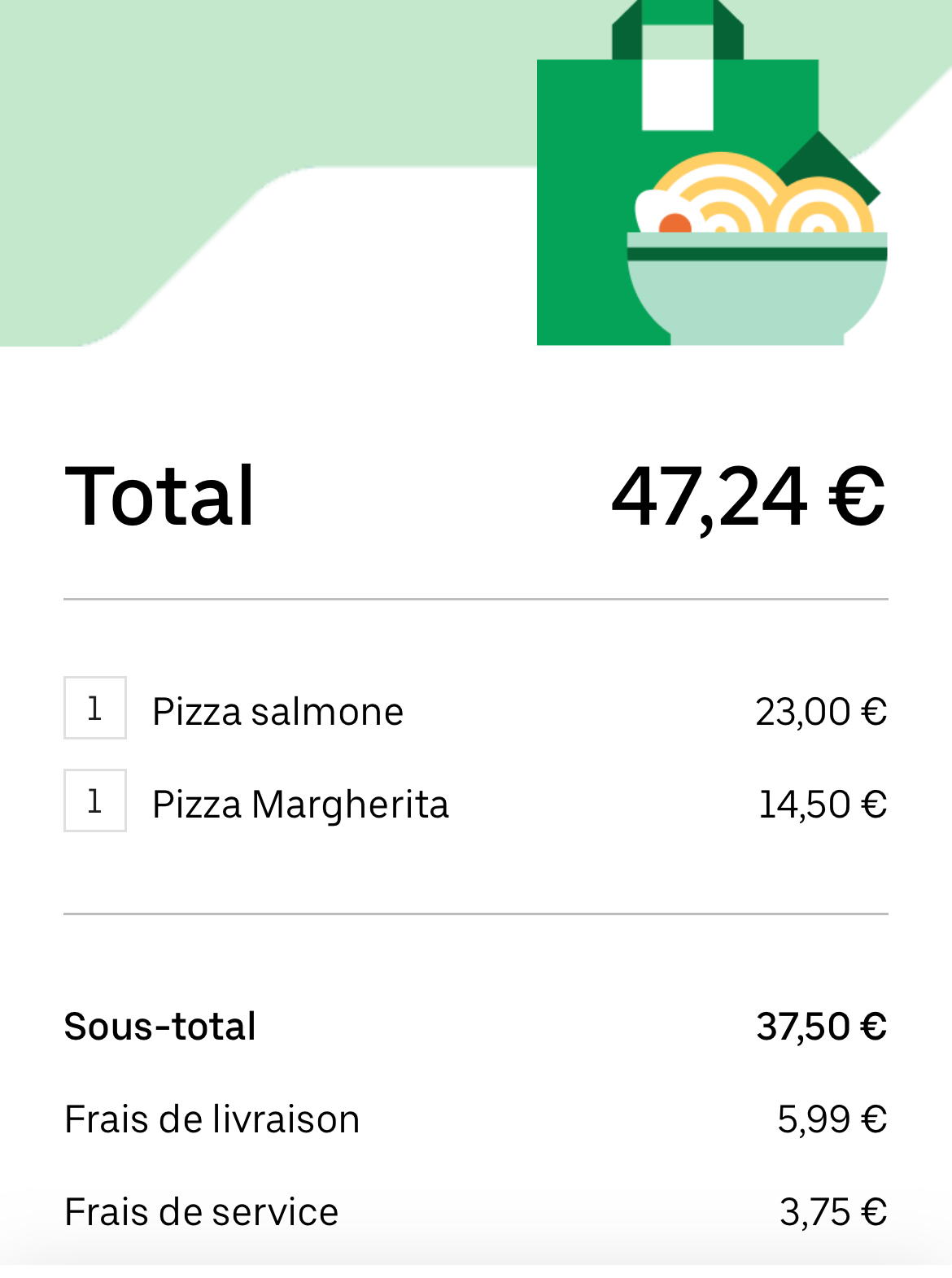 Commander sur ubereat prestation rapide ce pensant pour 47€ nous nous attendions à mieux !