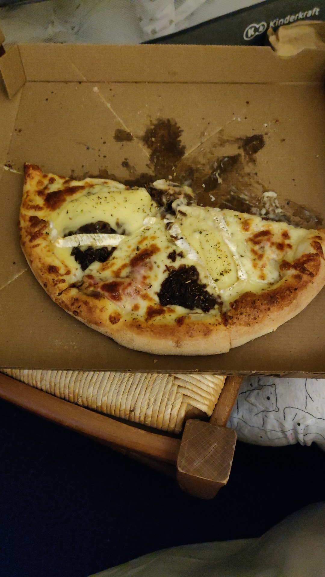 Pizza généreuse et goutu ! Je recommande ! En photo la noix 1/2 roquefort + 1/2 chèvre et le camembert.