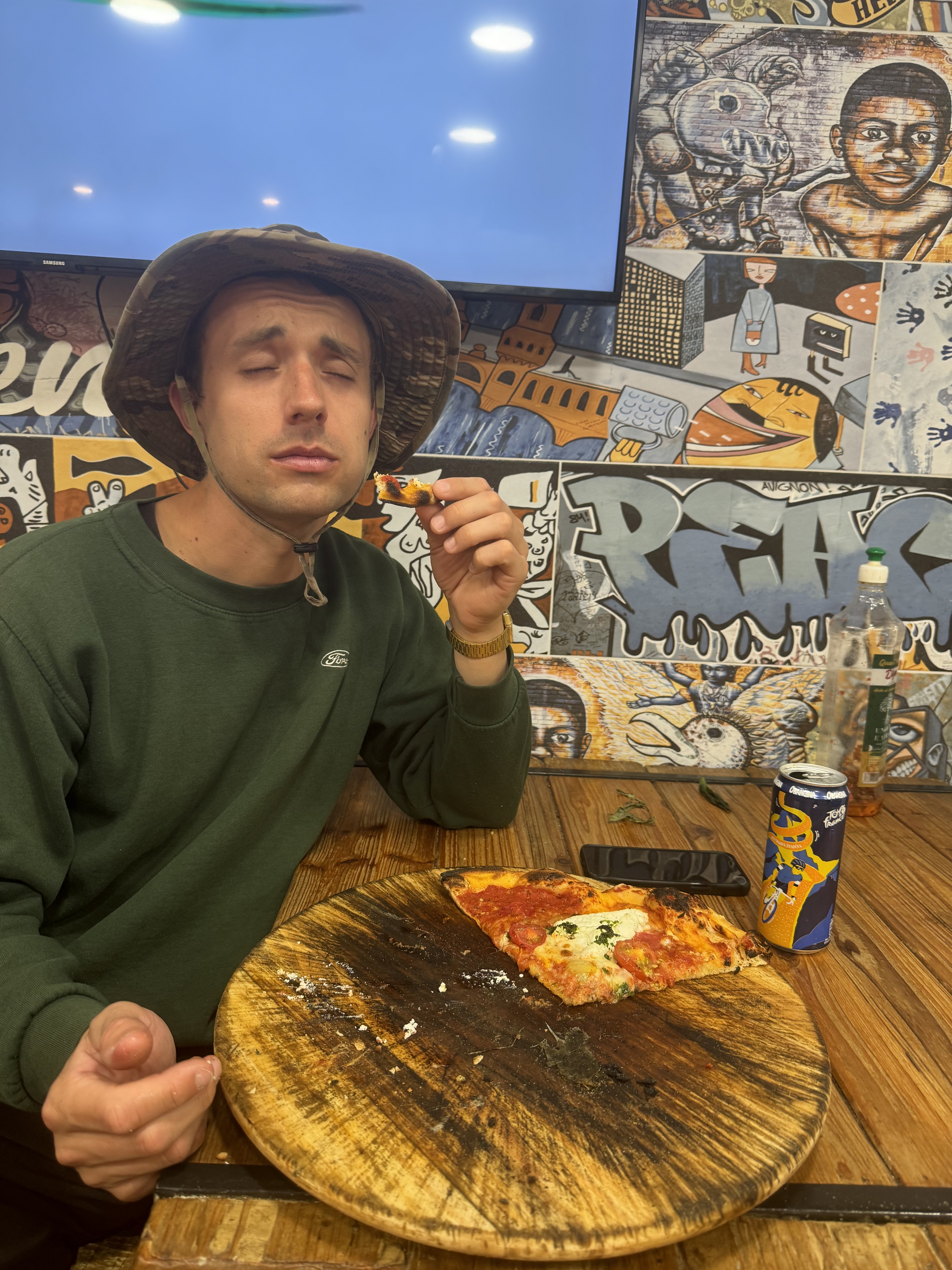 Musique trop forte Pizza bonne
