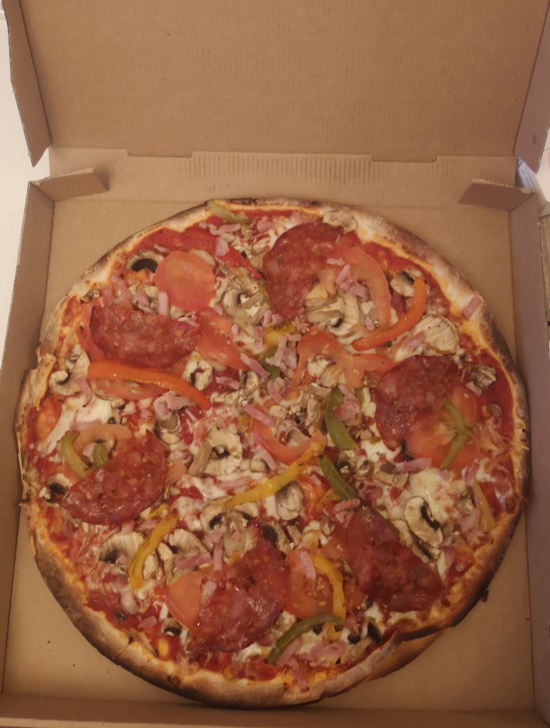 Plusieurs pizzas prises dans le cadre d'une opération de financement pour des enfants. Très déçus. On avait très faim après les avoir manger. Pas très grande à la base, pâte hyper fine, très peu de garniture.