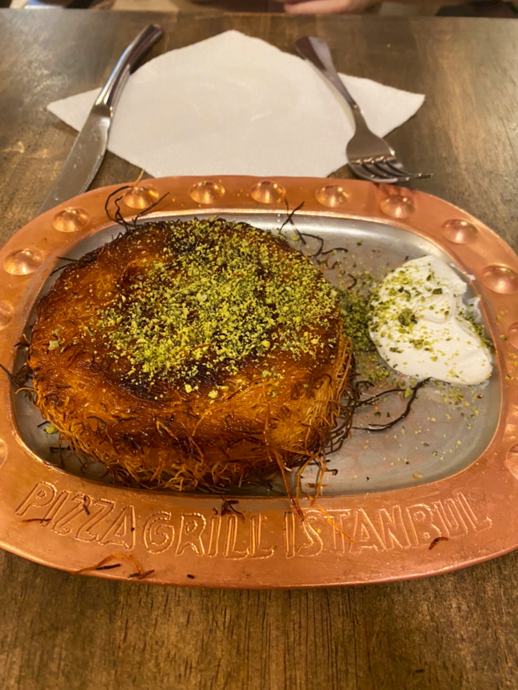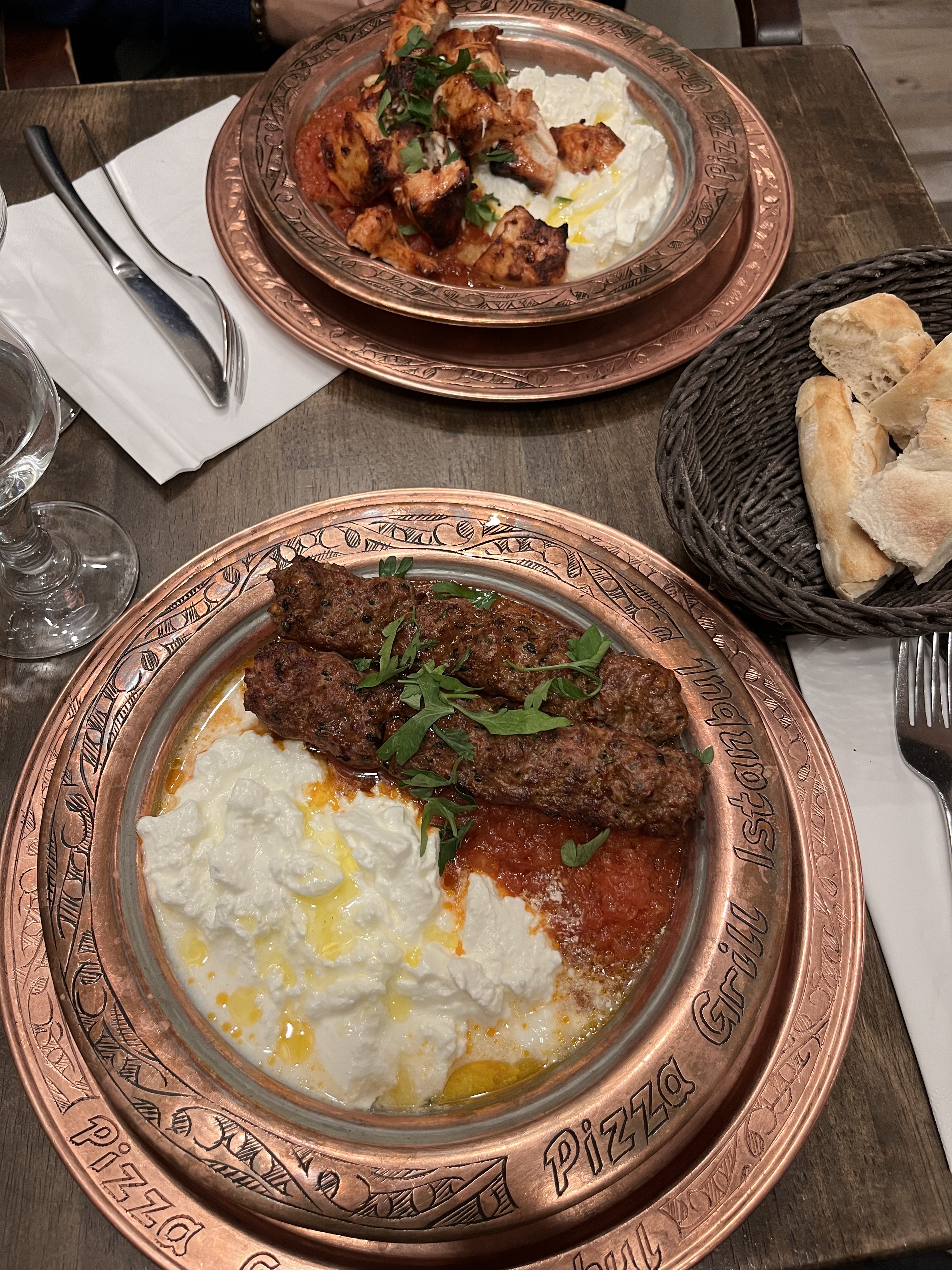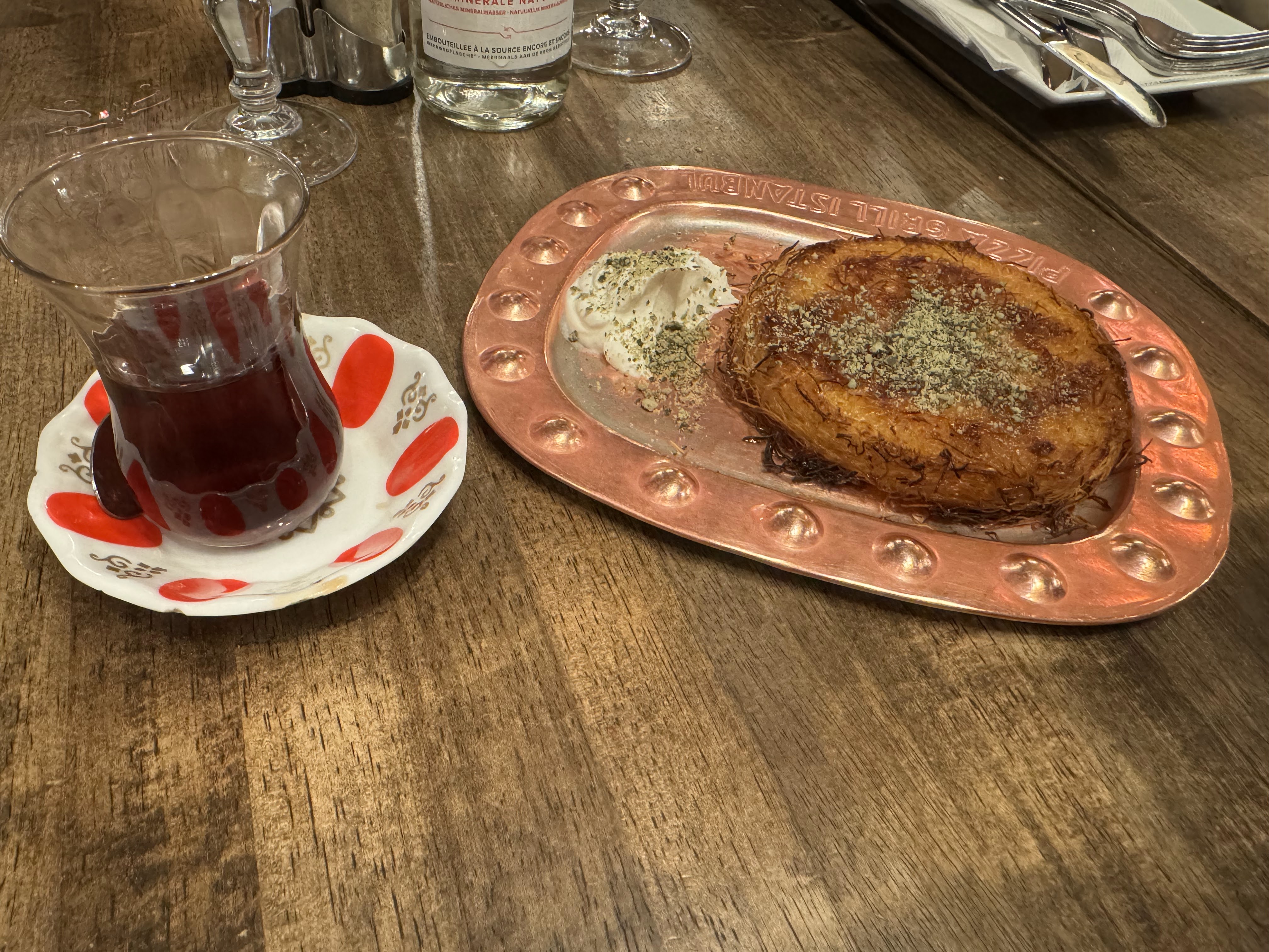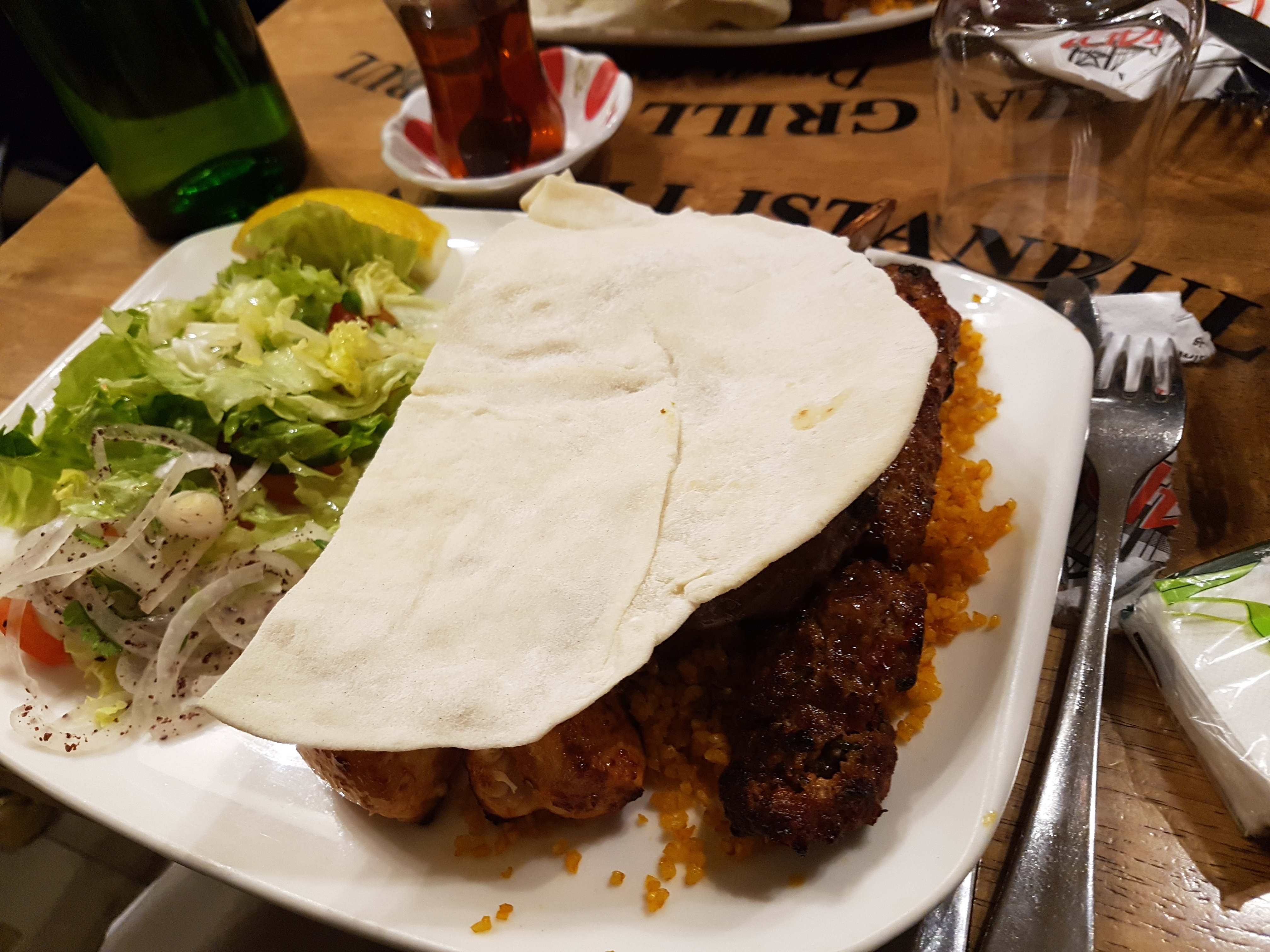 C’est un restaurant qui est très largement au niveau des restaurants typique d’Istanbul du fameux quartier de Beyoglu, restaurants traditionnels avec plats m’éditerait cuits au feu de bois et barbecue. Nous avons pris des grillades mixtes et un plat d’aubergine et d’adana kebab cuit au feu de bois. Puis terminé par un Kunefe delicieux. Ca tabasse!