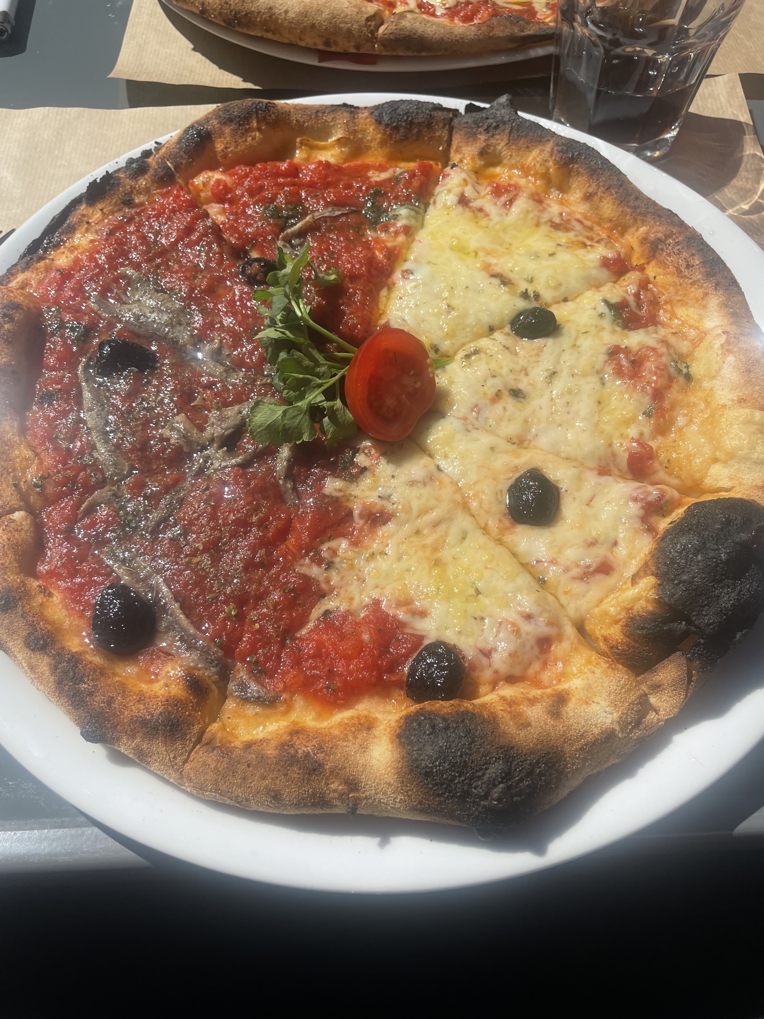 Un samedi midi, une petite terrasse au soleil, 2 pizzas excellentes , un patron de caractère qui se dévoue à son four, on a passé un moment excellent comme rarement. Merci et on reviendra