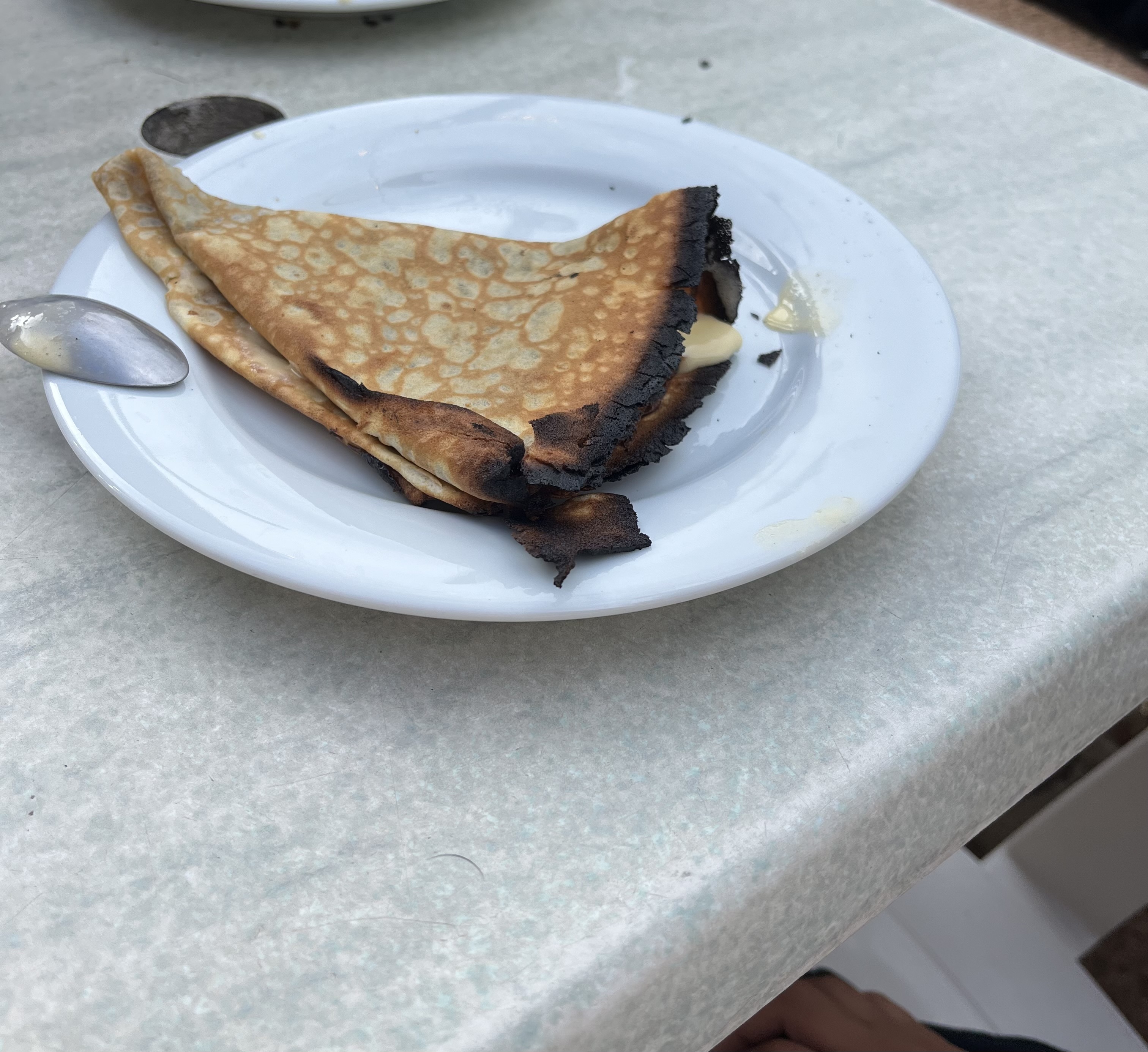 La cadre est sympa mais pour le reste… pas terrible. Nous sommes venus manger des crêpes. Crêpes sèches, brûlées sur les bords, sans goût. Comment est ce qu’on peut oser servir ça à ses clients sans être gêné ? Je déconseille fortement