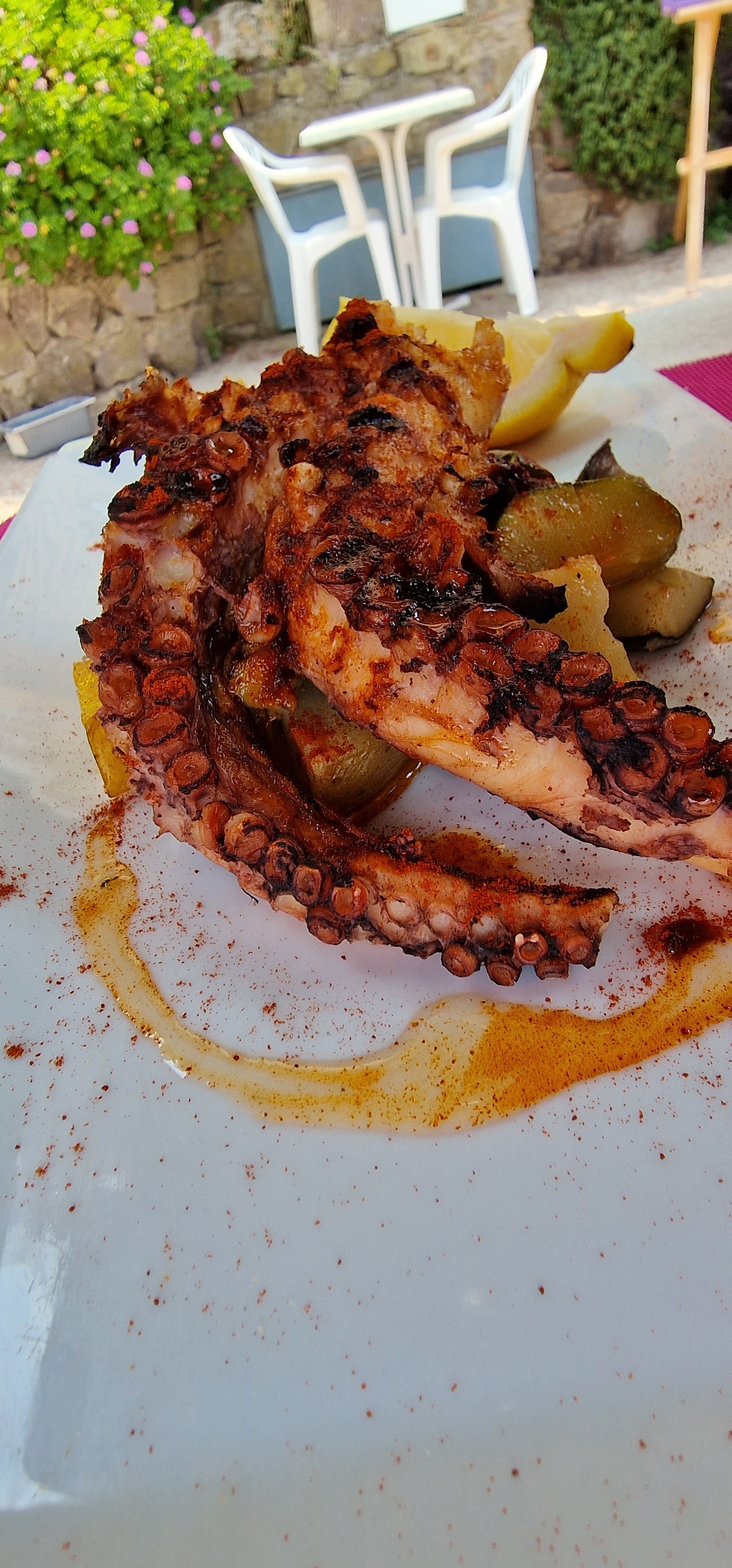 Patron hyper sympa et serveur très gentil aperitif offert une sangria a tomber par terre pour la reouverture.Cadre idilique 32 euro pour 2 personne c'est plus que résonable nous nous somme regalé et leur glace c'est juste un délice