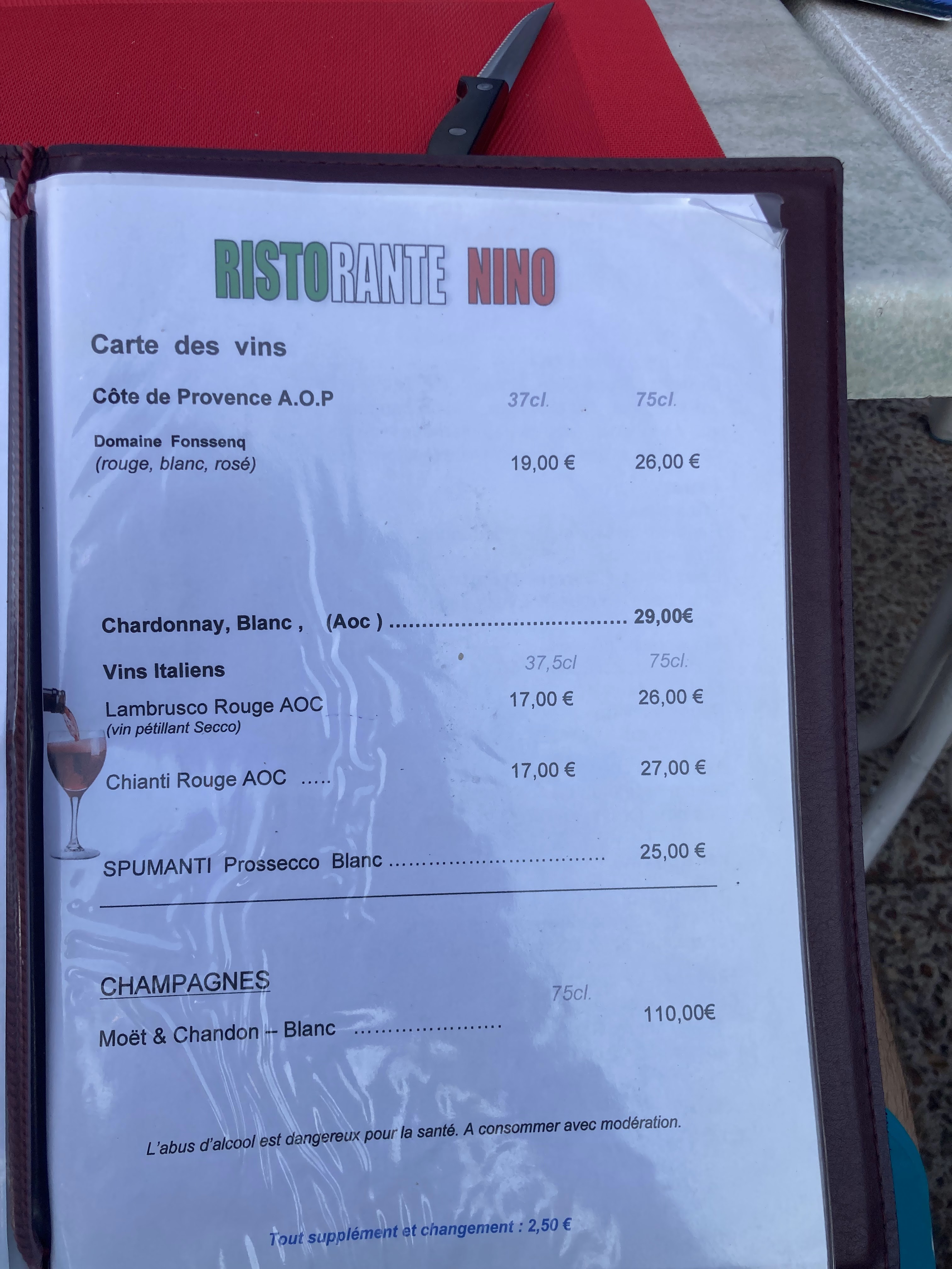 Repas parfait cependant la femme de Nino soit Maria est très désagréable et agressive. Elle devrait vraiment arrêter de travailler ce qu elle souhaiterait et le dit ouvertement à sa clientèle. Sa façon de traiter les clients est inadmissible de plus en fonction de votre tête le prix du café change jusqu a 5.5 sur le cafe