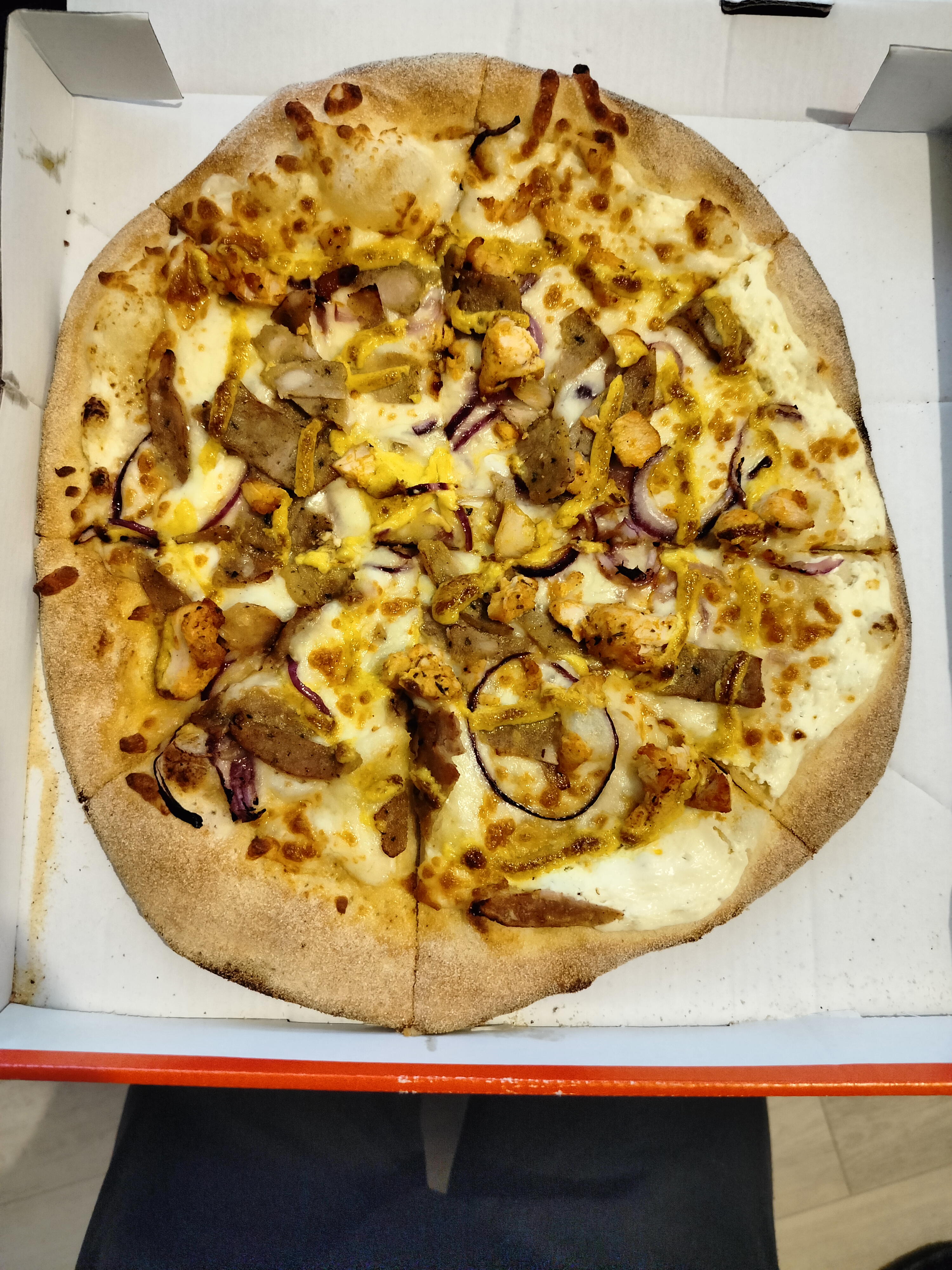 Pizza boisé immangeable, un amas de crème fraîche a été balancé en paquet sur la pizza à la va vite si j’aurais pu mettre zéro étoile je l’aurais fait ,de plus la taille me paraît bien petite pour une pizza mega, je suis déçu car dans les autres restaurants de la chaîne c’est bien mieux !!