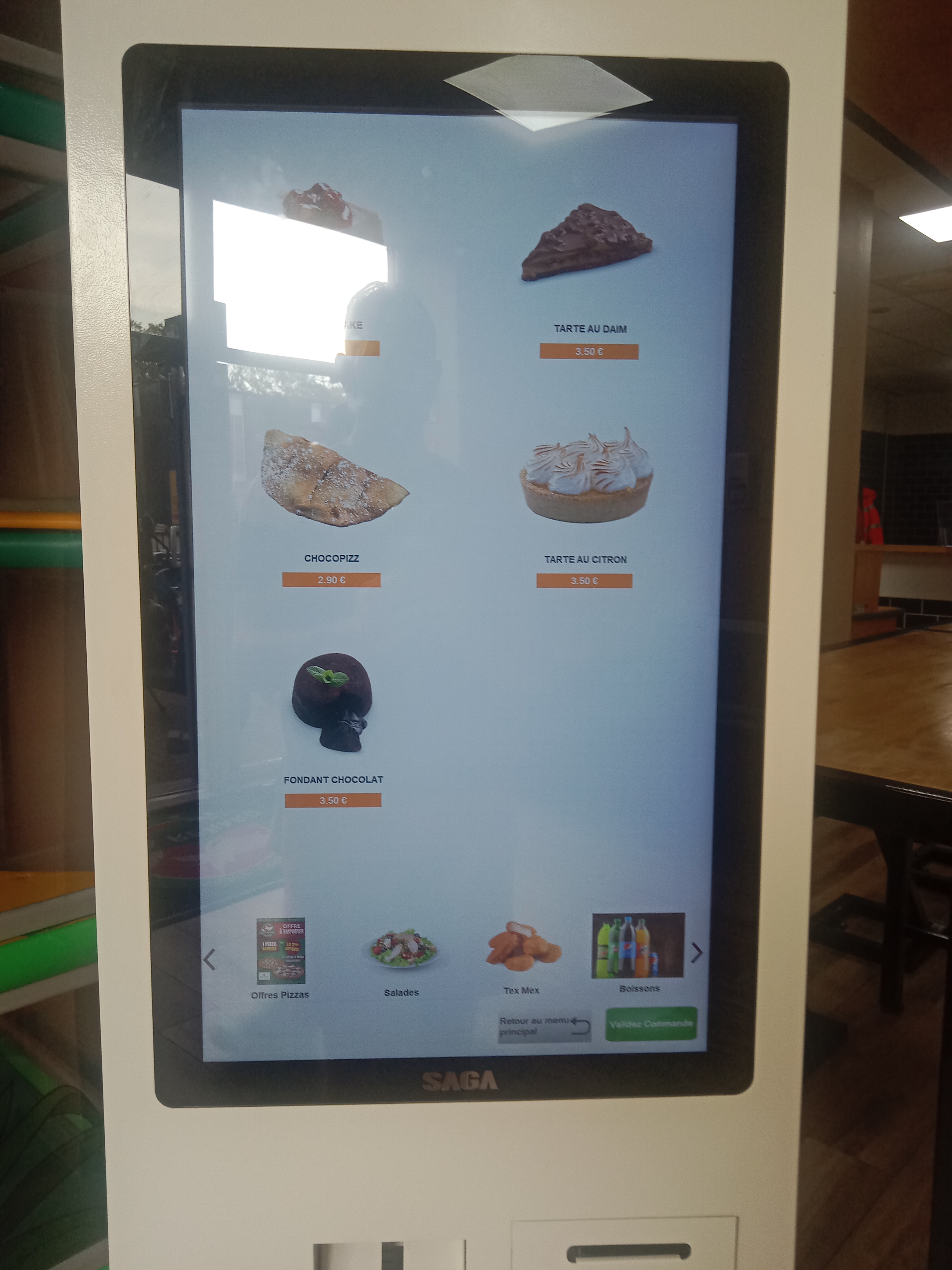Possibilité de manger sur place extérieur ou intérieur... 29,90 € pour 2 grandes pizza avec 2 boissons de 1.5L sur place. Commande à la borne comme n'importe quel fast good avec possibilité de personnaliser sa pizza. Petit air de jeu pour les enfants Stationnement facile Pizzas très copieuses et très bonnes !! La personne qui nous a servi était vraiment très gentille et très serviable ! Je recommande +++ 👍👍👍👌👌