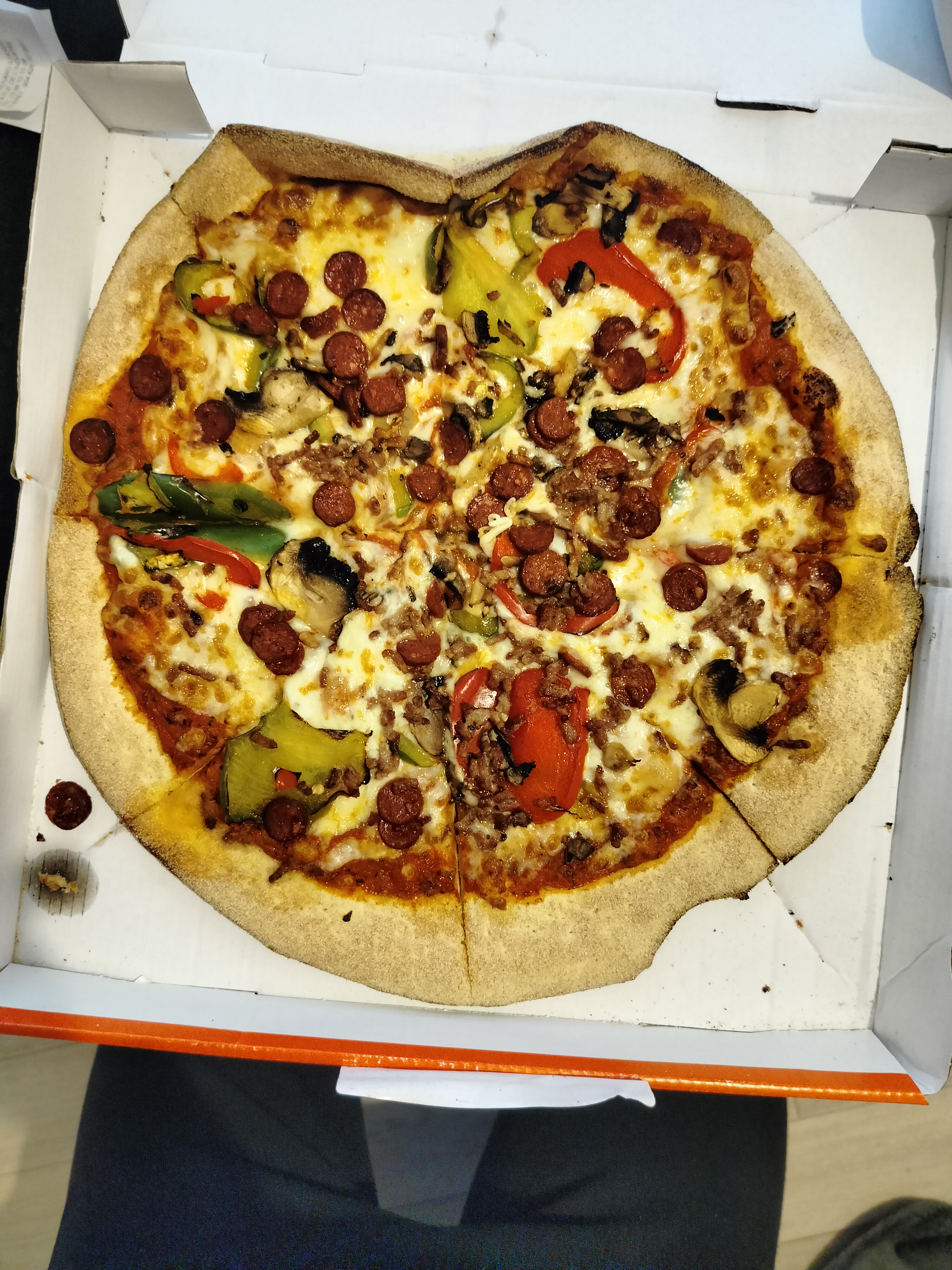 Très bonne pizza garniture généreuse très goûteuse très bon rapport qualité prix je recommande fortement. Cadeaux pour les enfants ça fait très plaisir 👍👍