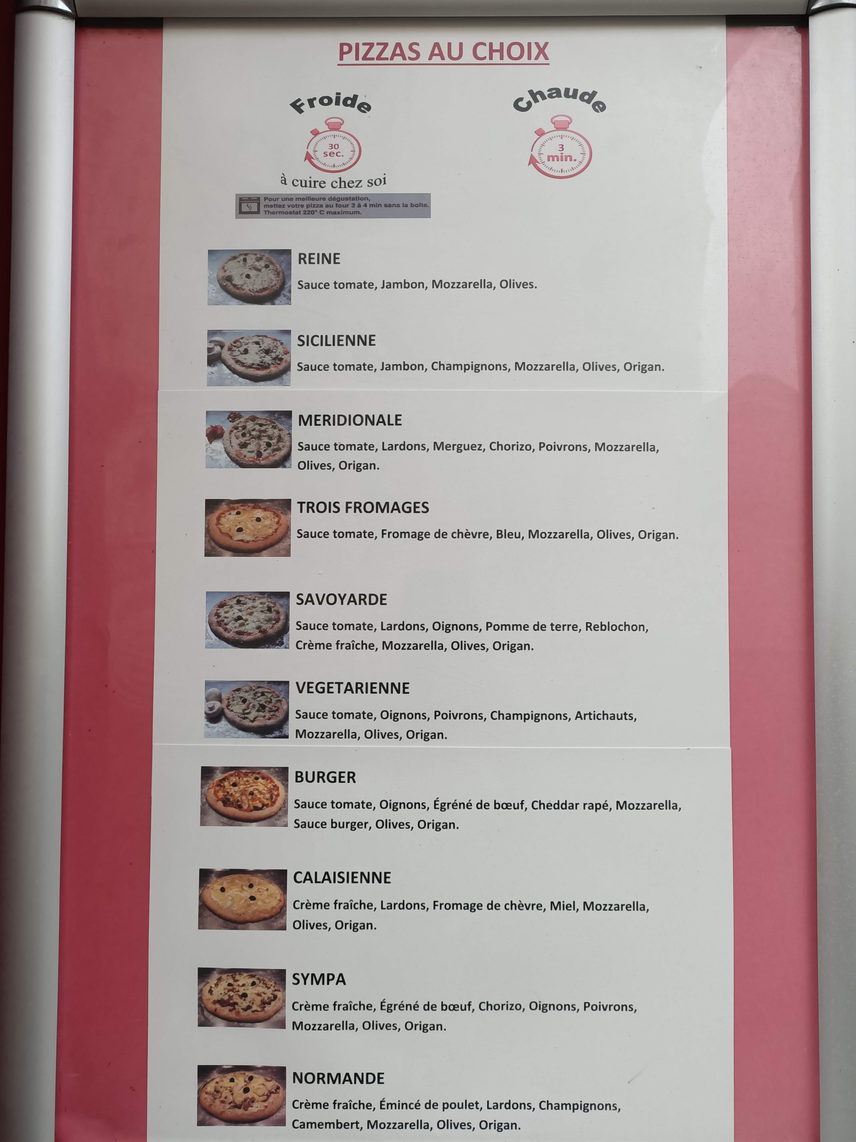 Pizza très bonne, froide qu'on peut cuire à la maison en 5 min ou cuite sur place en 3 min vraiment extra