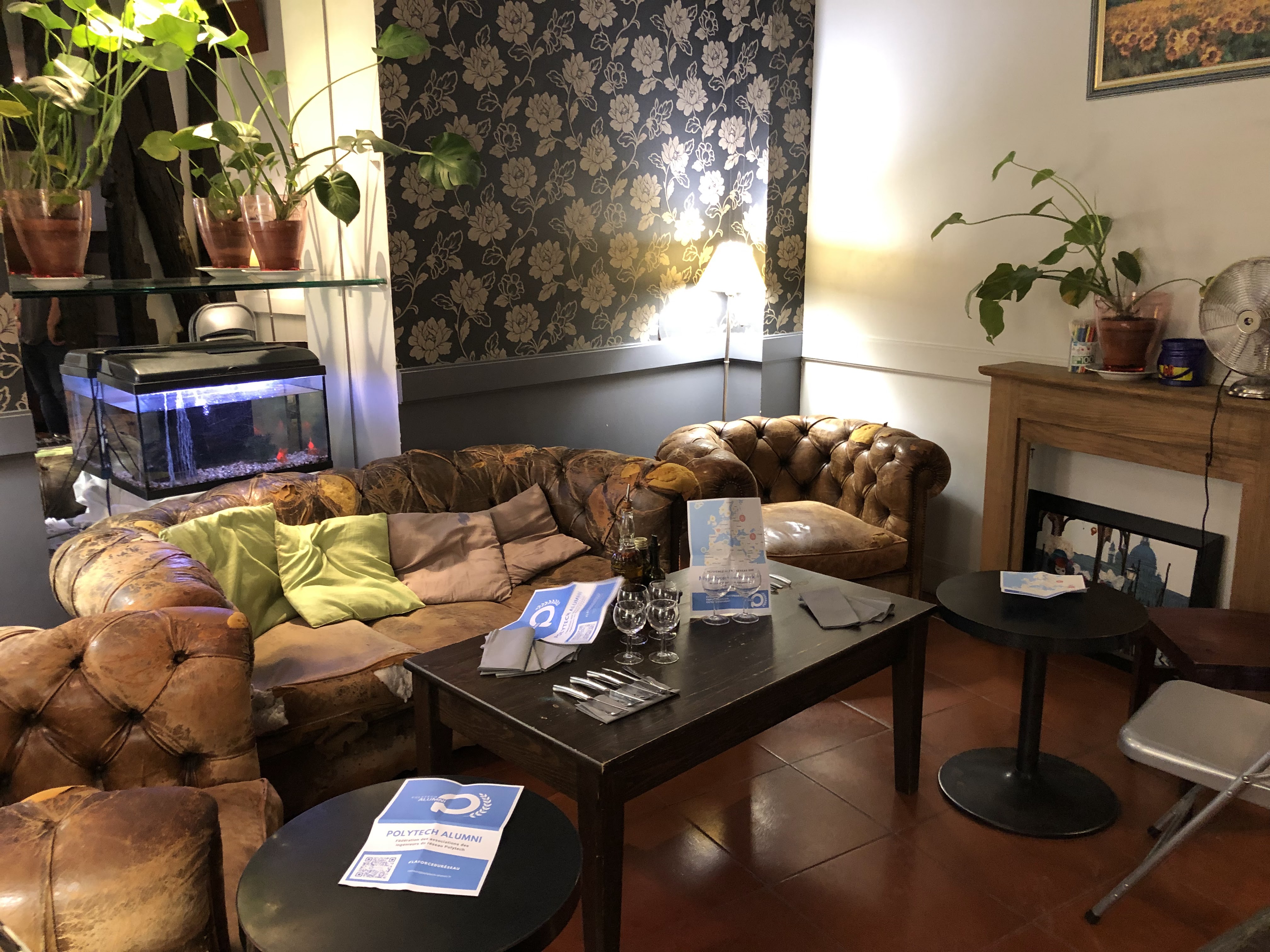 Jour calme, nous avons mangé dans le petit salon avec les poissons rouges : le top avec un petit. Les pizzas sont excellentes et l'équipe au petits soins.