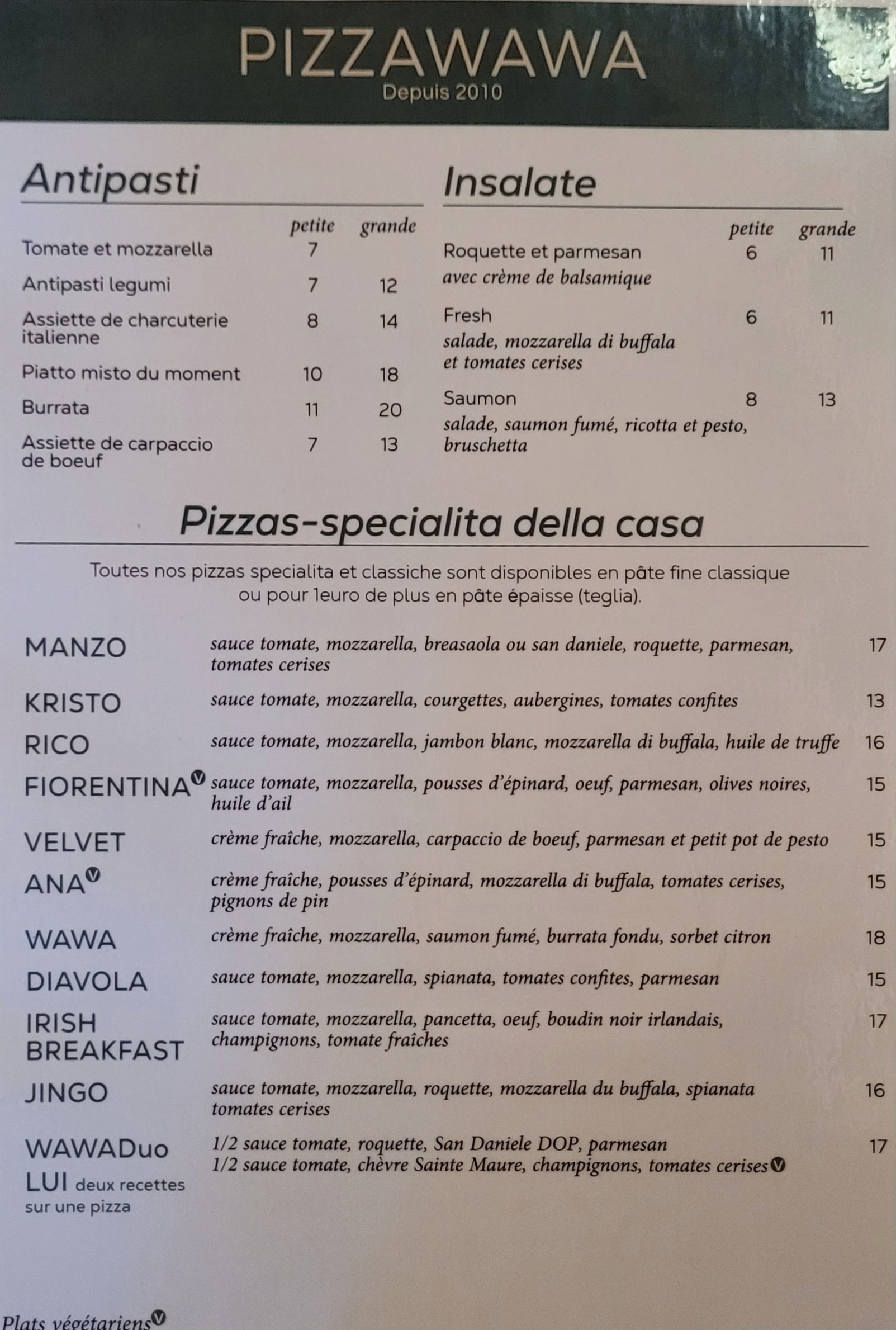 Pizza Wawa ne déçoit jamais. La bonne bouffe est une garantie. Presque tous les plats sont fait maison qui est maintenant une qualité rare sur Paris. Je vous recommande!