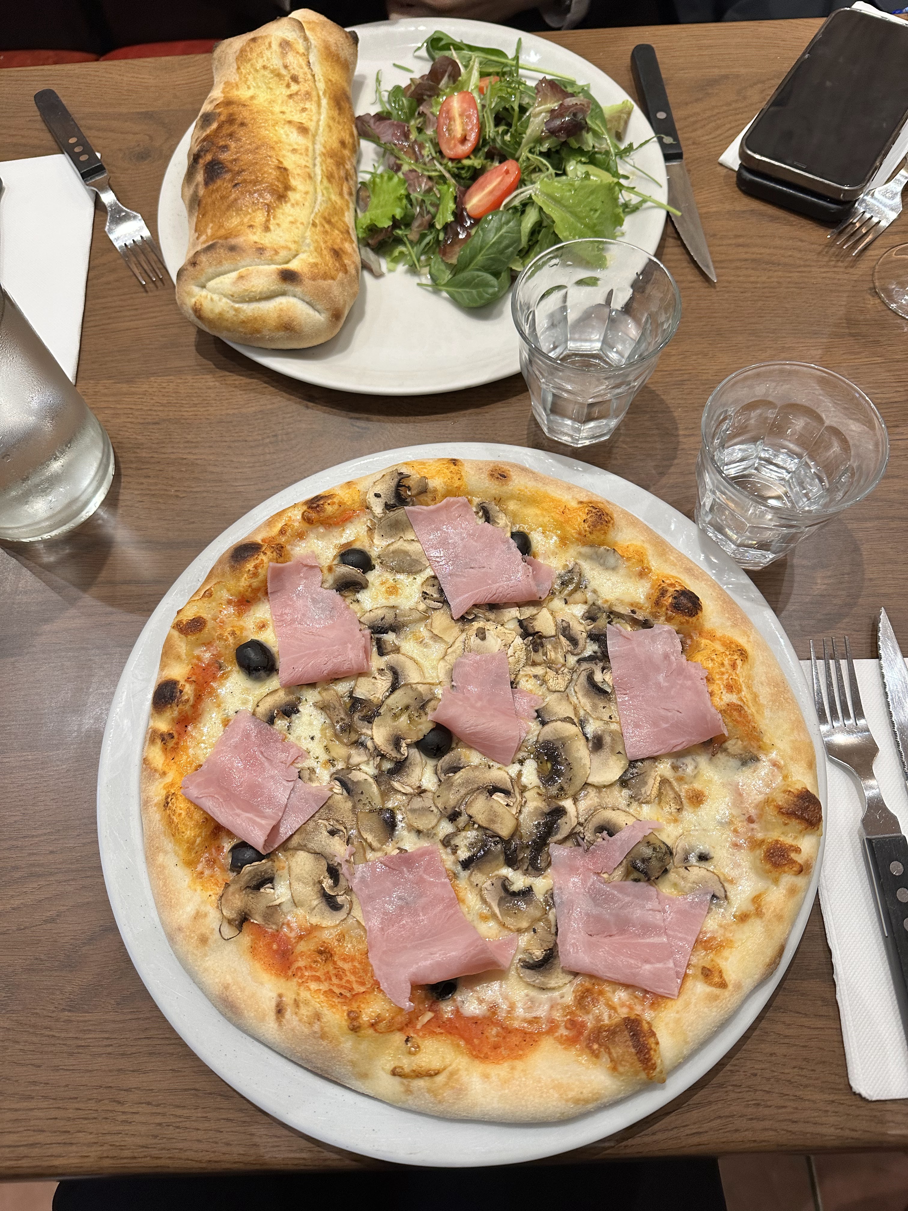 Pizzas bonnes mais pas les meilleures. La pizza Regina était avec du jambon avec de la couenne, en tranche. La pizza saumon était sympa, ils ont mis une boule de glace au citron avec, plutôt original ! Sinon temps d’attente d’environ 45min avant d’avoir nos deux pizzas ! Serveurs très gentils et service agréable.