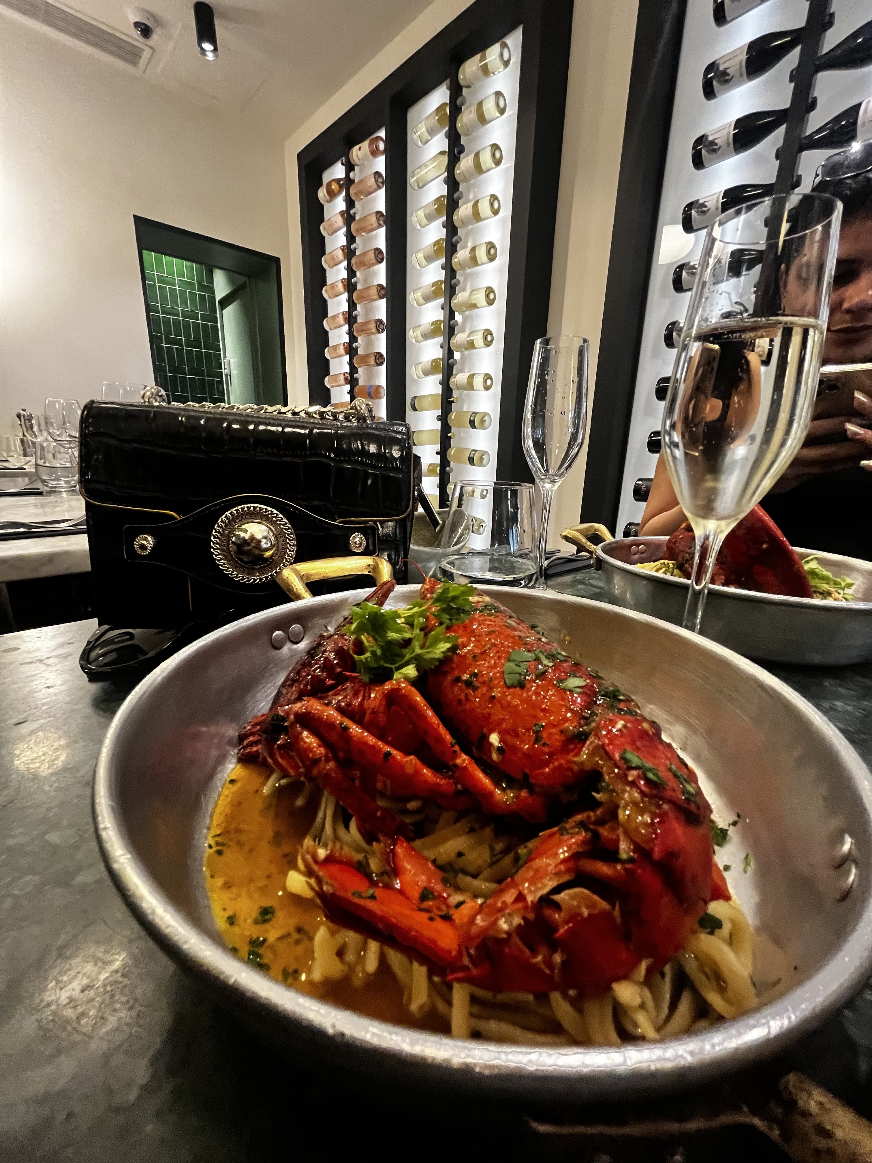 Le service était bon. Les spaghettis au homard bleu étaient délicieux, mais ils n'ont que la saveur. J'avais de l'orge 2 petits morceaux de homard. Je pense que pour le prix de l'assiette, il faudrait du vrai homard 🦞 Pour le dessert , le millefoglie était excellent 👌