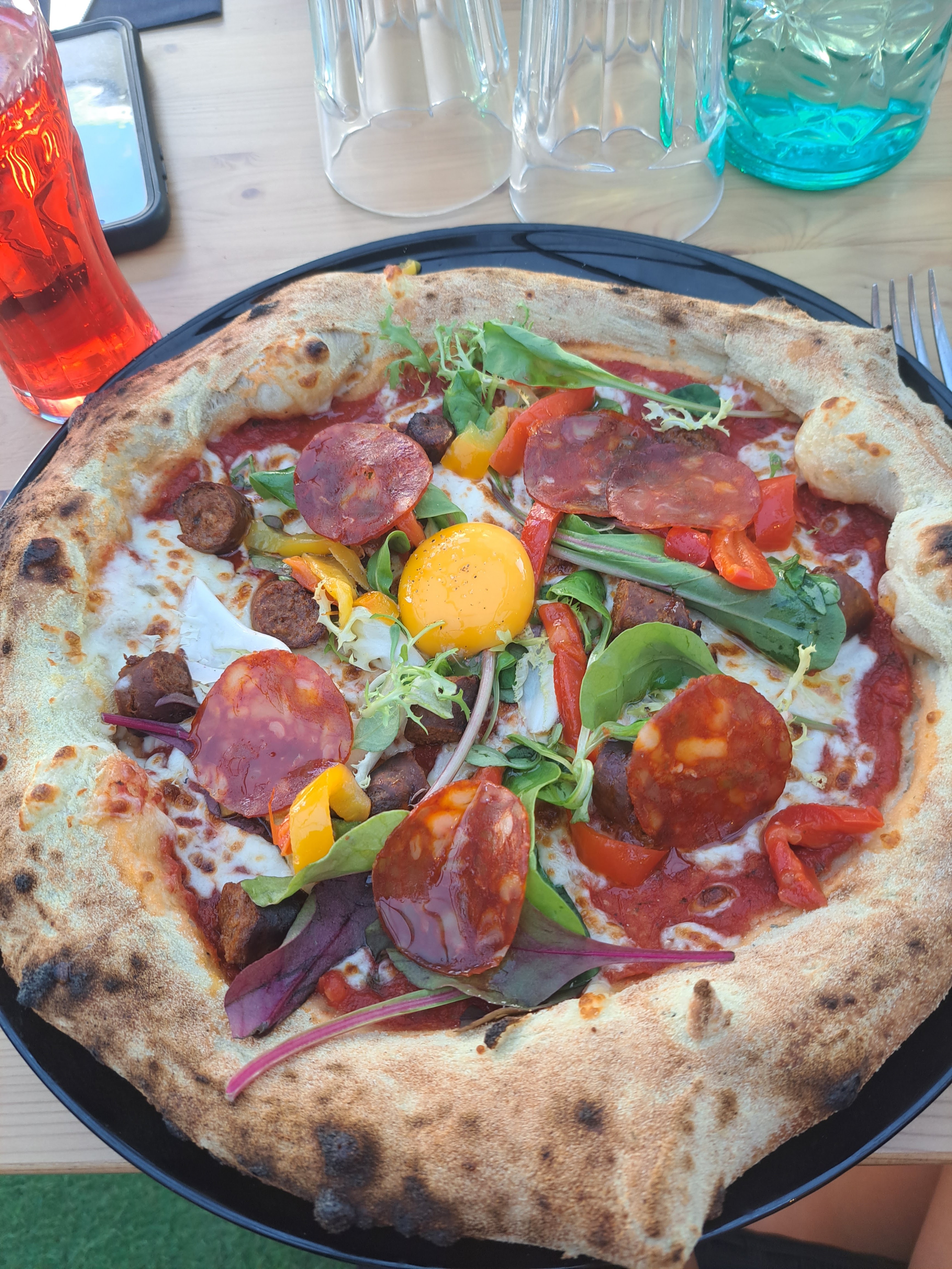 Un passage dans cet établissement s'impose : 1°) l'accueil est très chaleureux et Anaïs, la serveuse, est aux petits soins pour sa clientèle. Très souriante, elle répond à toutes les questions avec beaucoup de chaleur et d'humanité et elle est de très bons conseils ; 2*) Les apéritifs sont de vrais apéritifs et non pas quelques gouttes d'un quelconque alcool. Je recommande le SPRITZ, servi généreusement et d'excellente qualité 3°) Les pizzas : UN REGAL. On trouve ici, LA pizza, une merveille... Je suis venu, je reviendrai. Merci pour ce moment inoubliable