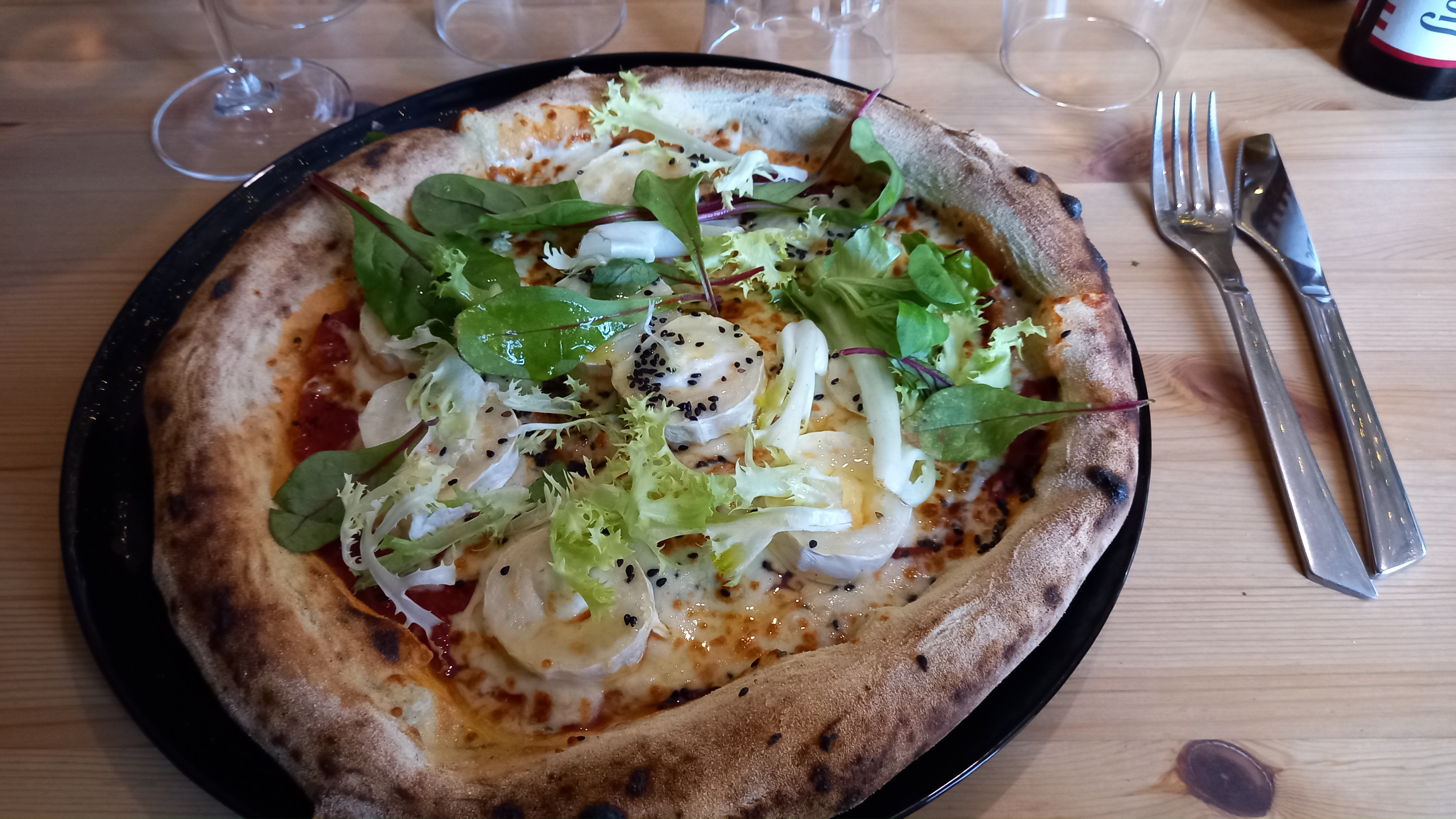 Tout simplement les meilleures pizzas que j'ai mangées de ma vie. La pâte est excellente (même seule), la garniture généreuse et les produits de qualité. Mention spéciale à la pizza saumon, qui ne se contente pas de quelques zestes de saumon fumé mais bien de belles tranches de saumon frais ; et à la pizza truffière dont le goût particulier (de la truffe) est bien présent. Seul axe d'amélioration, le service, qui pourrait être plus efficace. Je recommande.