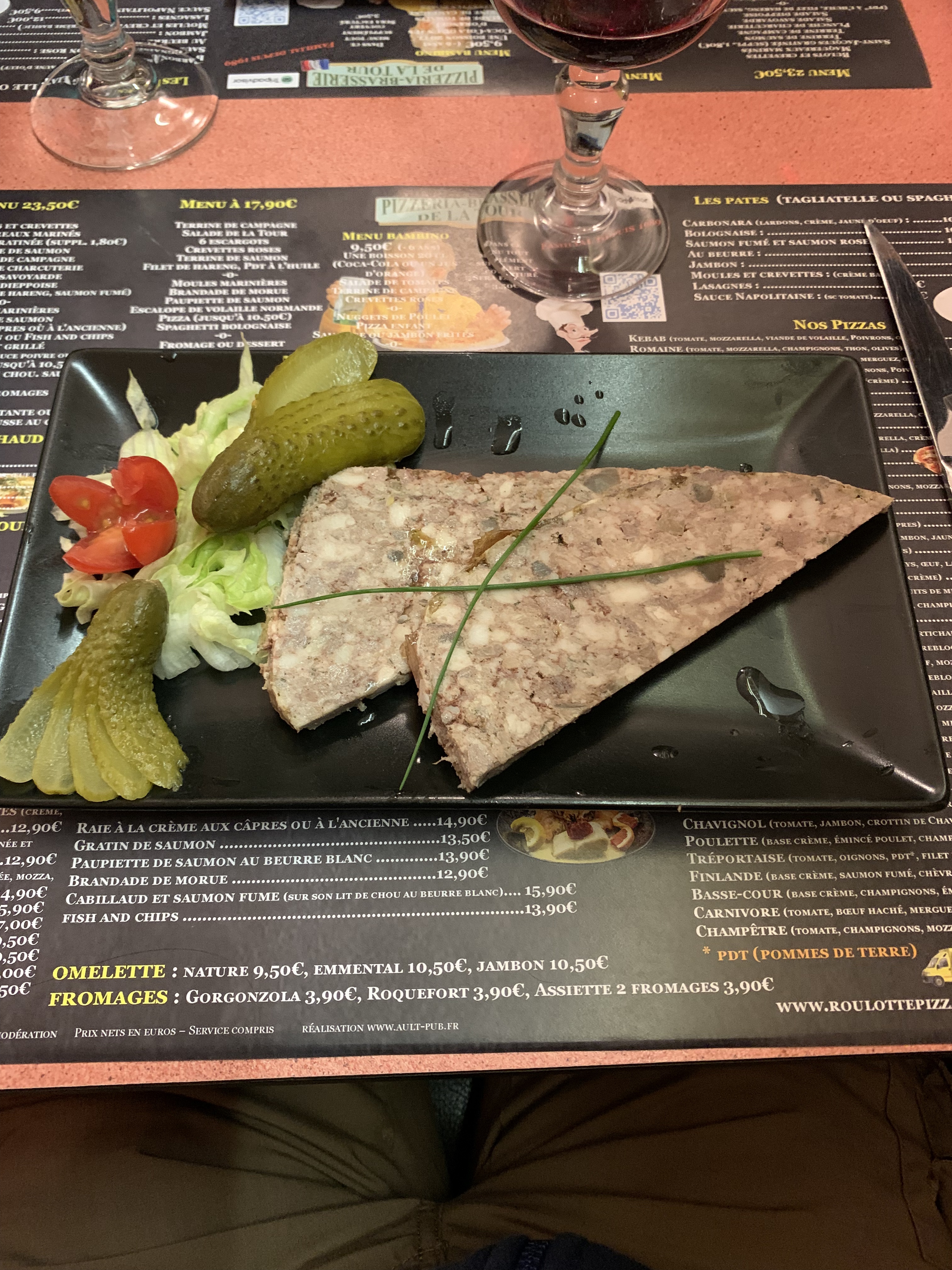 avons passés une excellente soirée, repas très très bon même excellent, terrine de saumon, pizza reine, et tarte normande pour Madame, salade de la tour, spaghetti bolognaise et tarte normande, service formidable et rapide, serveuse formidable. Je recommande sans hesité