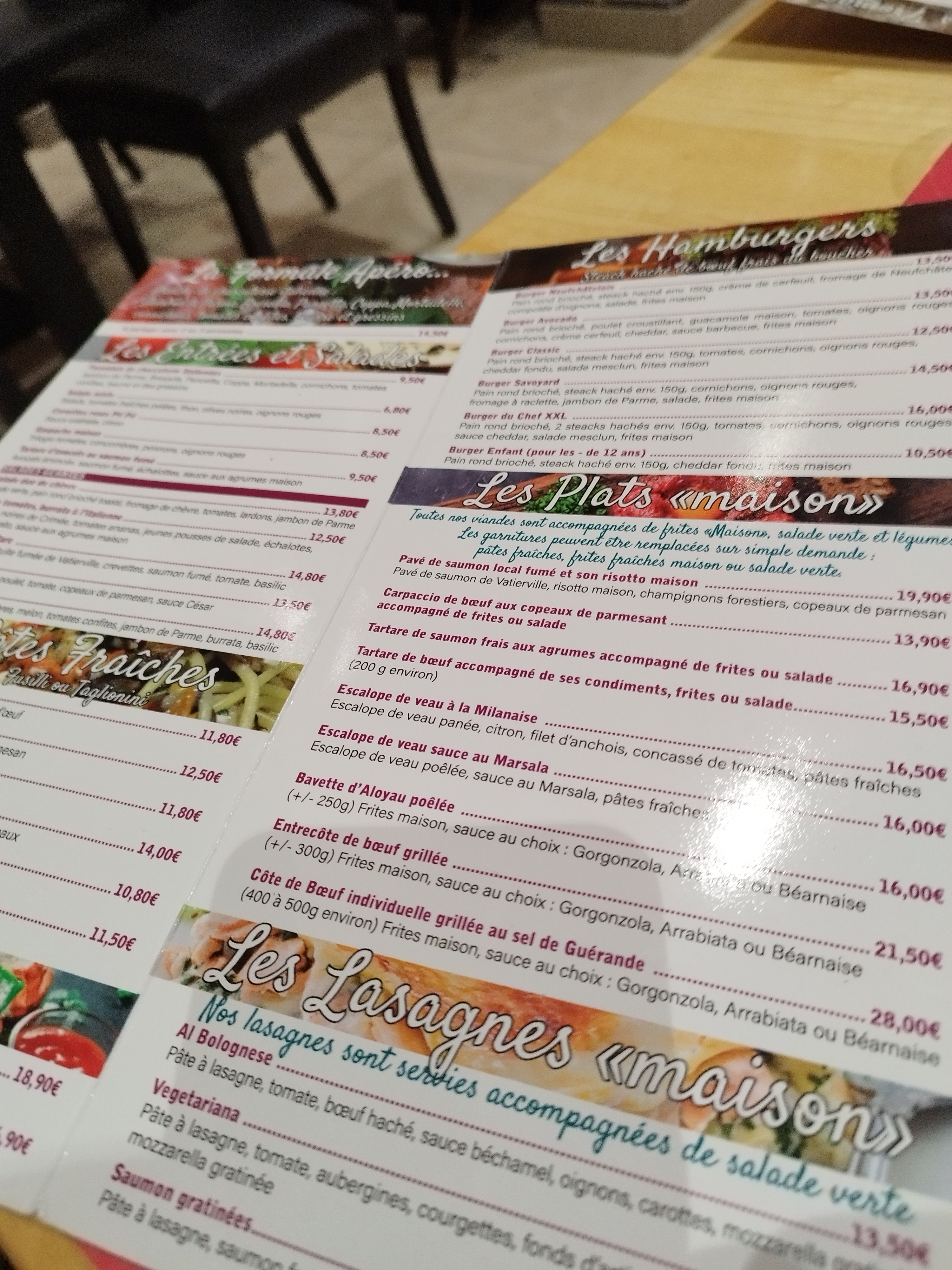 Le repas était vraiment excellent mon seul et unique point critique se sont les sets de table qui n ont aucun coloriage ni jeu pour enfant comme ont en trouve au buffalo même du haut de mes 28 ans je reste un grand enfant 😅