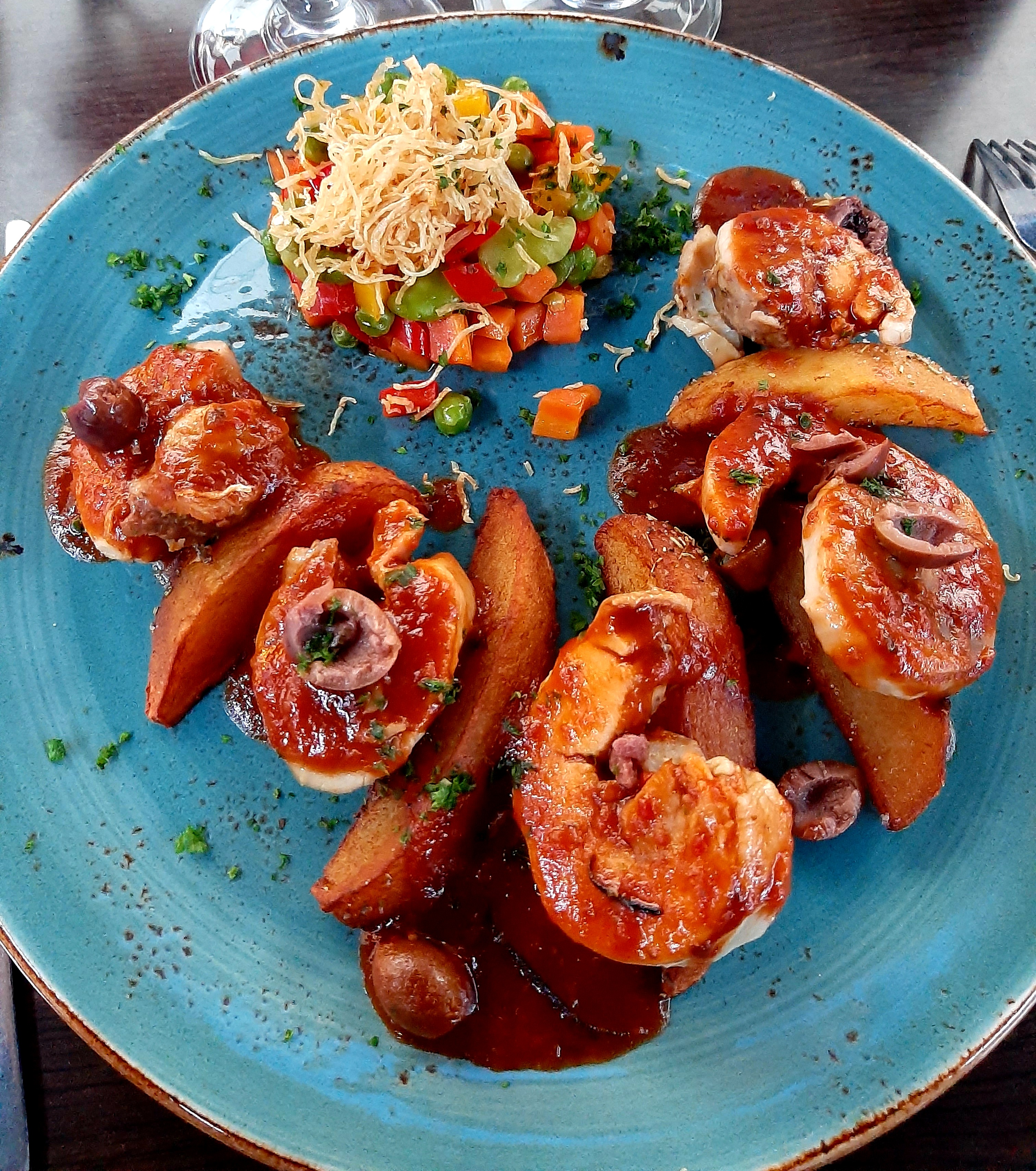 J'ai pris une escalope sauce citron avec légumes de saisons. Fade , cher pour ce qui est proposé . Plat servis en moins de 5 mn chrono ( servit avant même la pizza de mon ami ) légumes de saisons : poivrons, aubergines carottes champignons , comme au mois de juillet ....