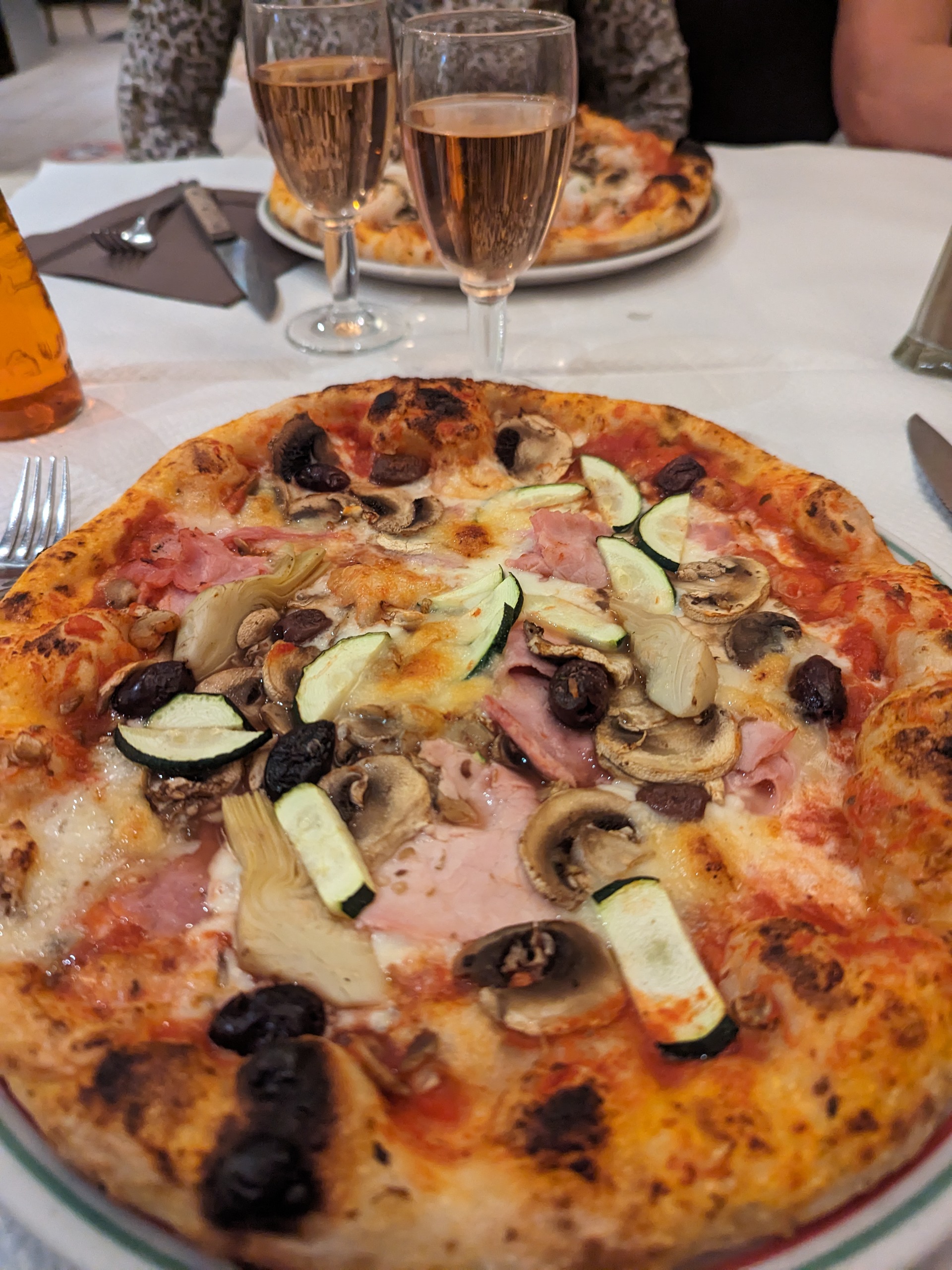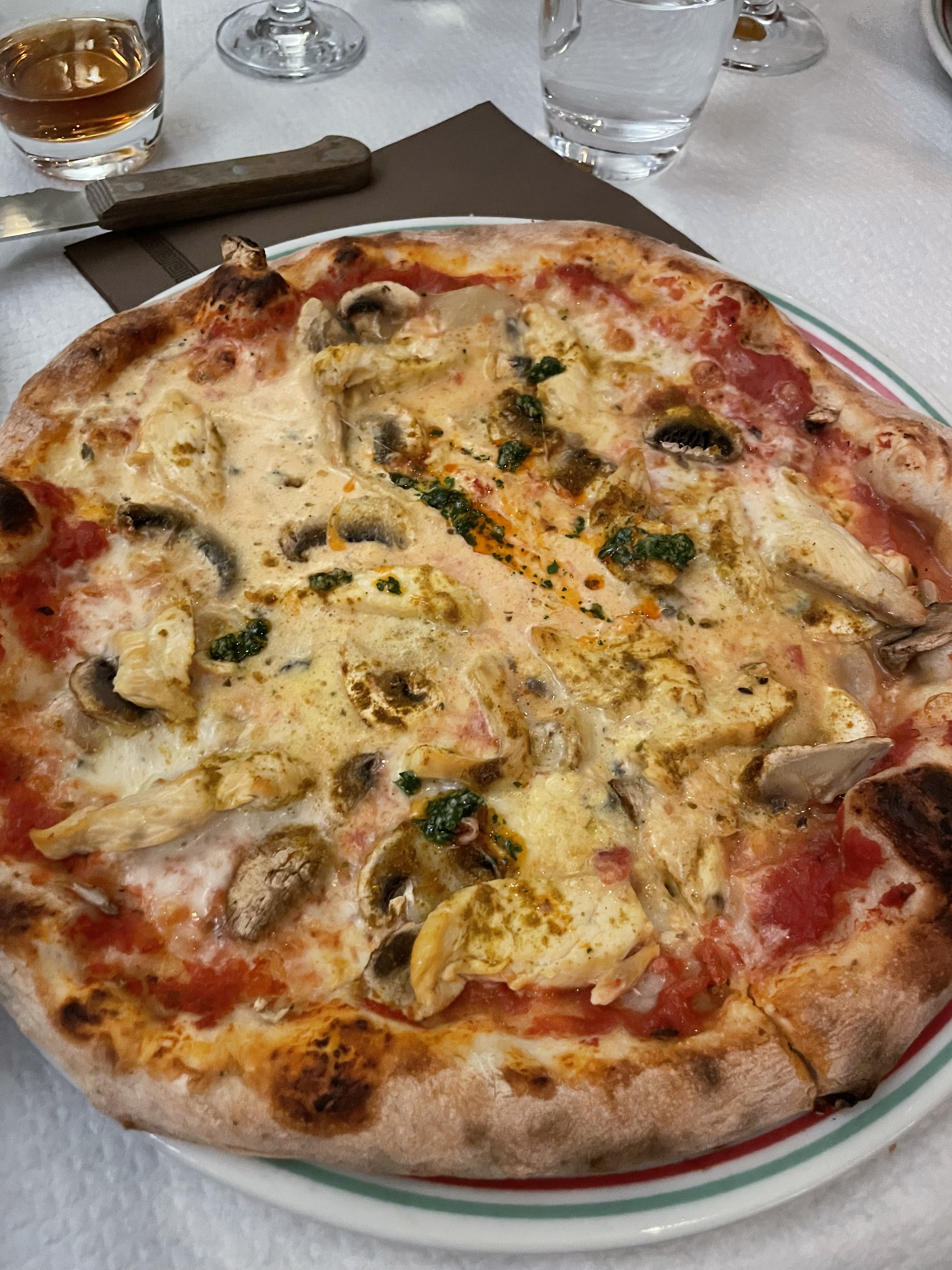 Pizzas généreuses, dont la pâte est croustillante, voire biscuitée, à souhait ! Vin italien en pichet très agréable, personnel charmant, service rapide... Je recommande vivement !