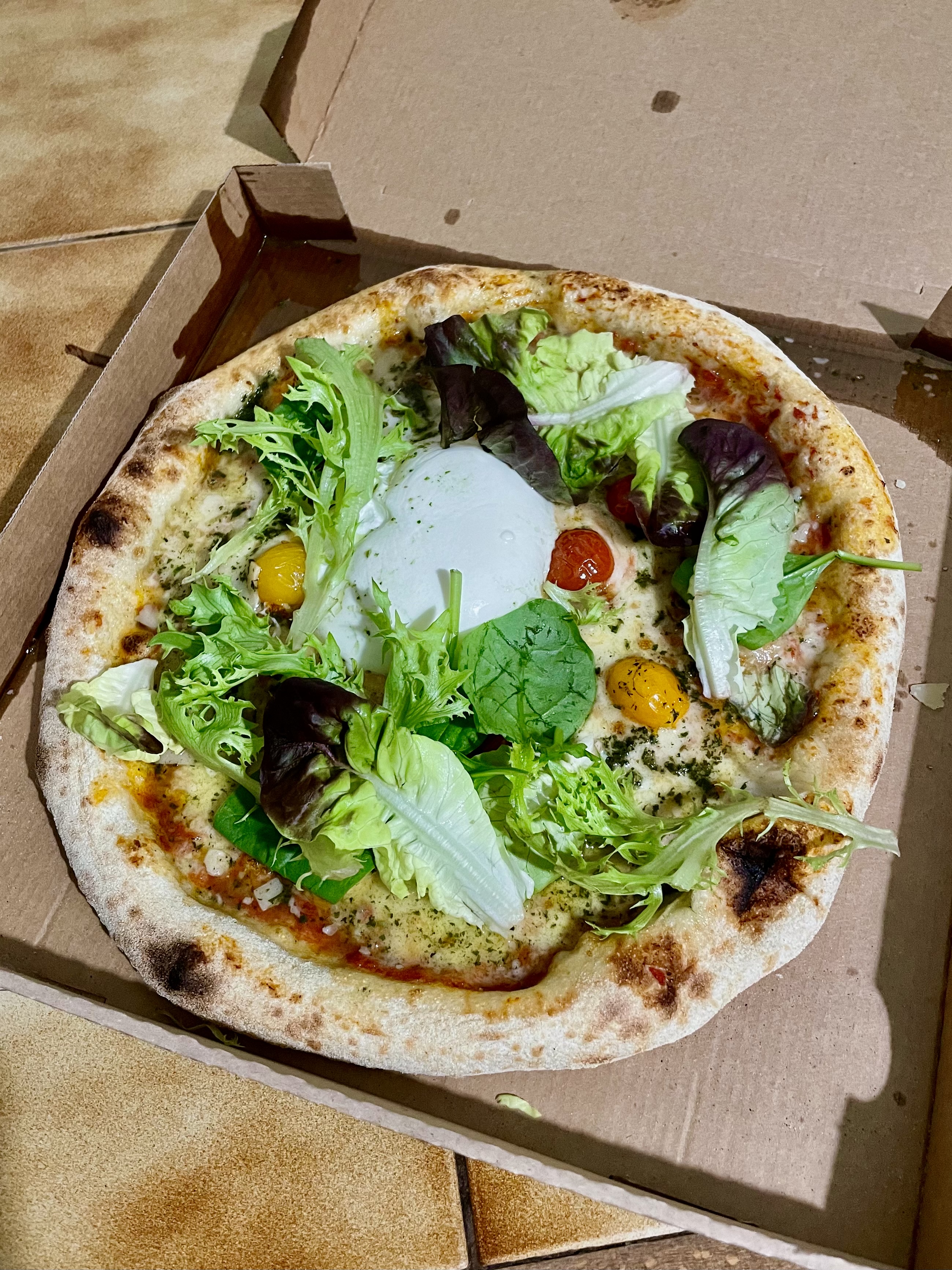 De délicieuses pizzas napolitaines avec des produits frais de qualité, comme cette pizza “Clementito” avec Burrata, tomates cerises, sauce basilic et feuilles de salade. Le personnel est très accueillant et sympa. Par contre, pensez à commander à l’avance, pas comme moi 😅.