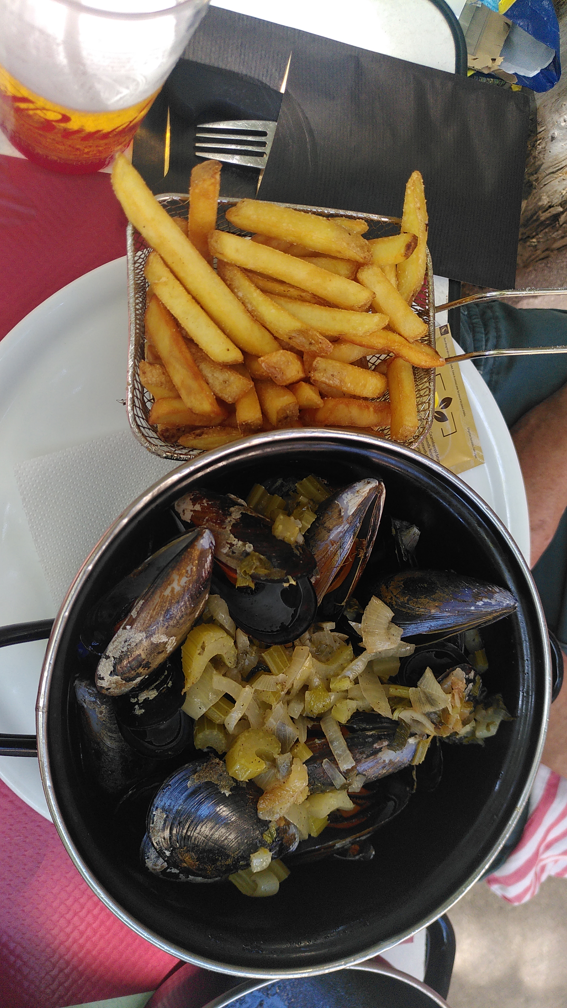 Le service et la nourriture étaient très bons, il y avait des moules et des pizzas, toutes deux vraiment bonnes