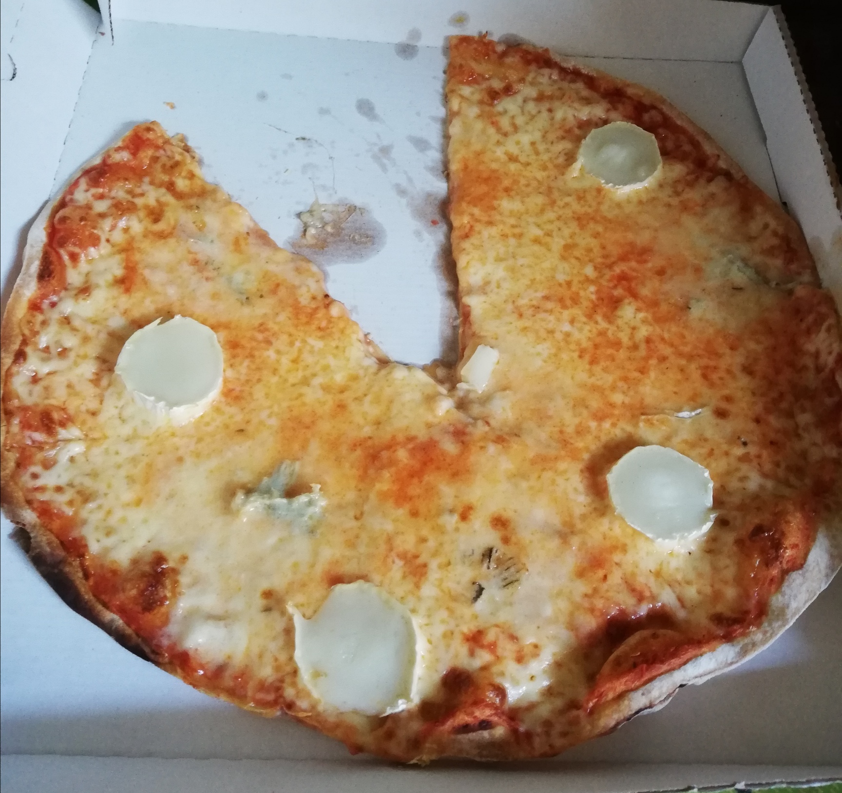 Pizza prise à emporter dégueulasses et je ne mâche pas mes mots, et c'est le cas de le dire ! Pâte très fine, pas cuite, très peu de garniture (pizza au chèvre avec 5 bout de buche au chèvre dessus), pizza hyper crémeuses. Pizza chèvre amandes, je ne conseille pas... Bref nous ne reviendront pas !
