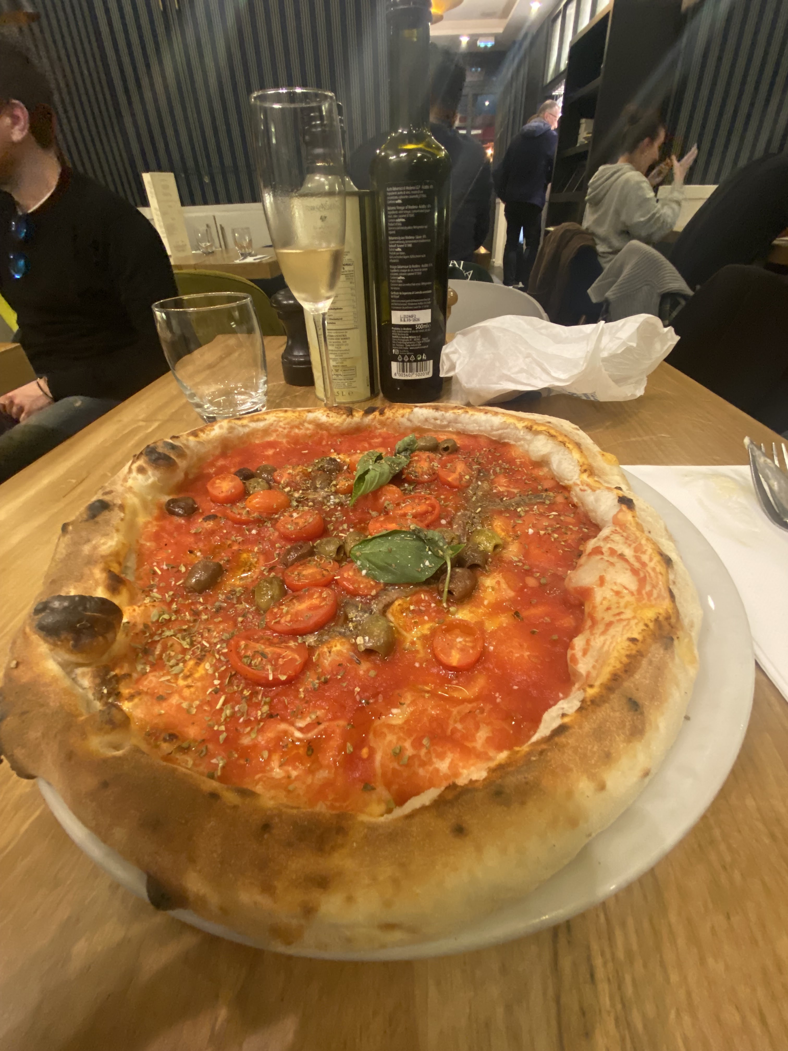 Véritable pizza napolitaine, avec une pâte bien épaisse sur les bords, mais tellement légère et aérienne en même temps ! Ingrédients de très bonne qualité, nous avons passé un bon moment ! Les serveurs sont au petit soin.