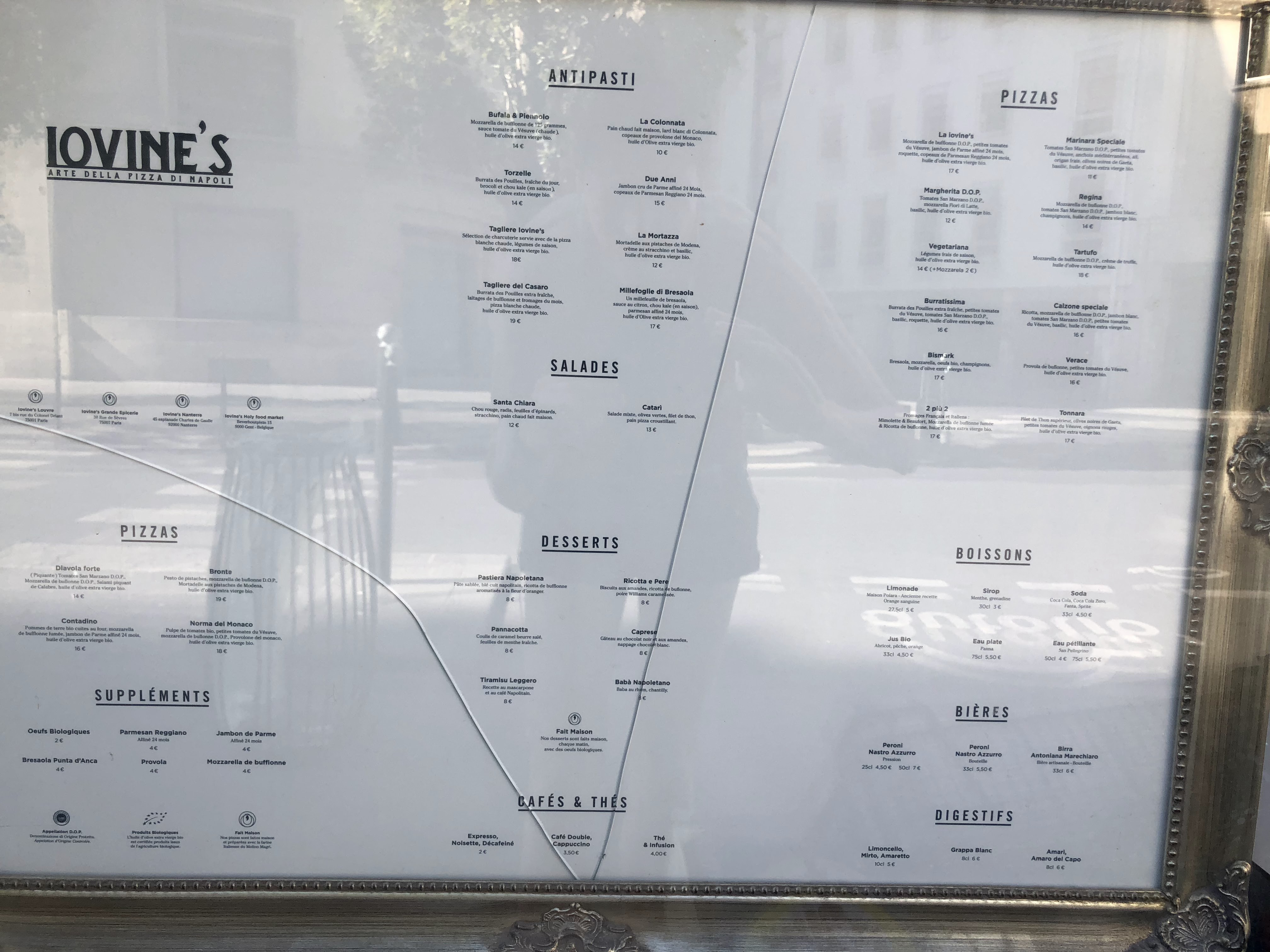La meilleure pizza de Paris, et de loin. J'en ai fait des pizzerias a paris, déjà les 3/4 sont tout juste passable, une pâte en carton et des ingrédients sans goût, alors qu'ici, chez iovines, tout est de qualité. La pâte est délicieuse, aérée et légère, les ingrédients sont tous remplis de goût et se suffisent à eux mêmes. Le personnel y est ultra accueillant et souriant. Le seul petit bémol, c'est le prix, 20 euros la pizza, ça fait déjà bien cher. Mais je préfère payer 20 euros et me régaler plutôt que de payer 13 euros pour manger du carton. Vous pouvez vraiment y aller les yeux fermés.