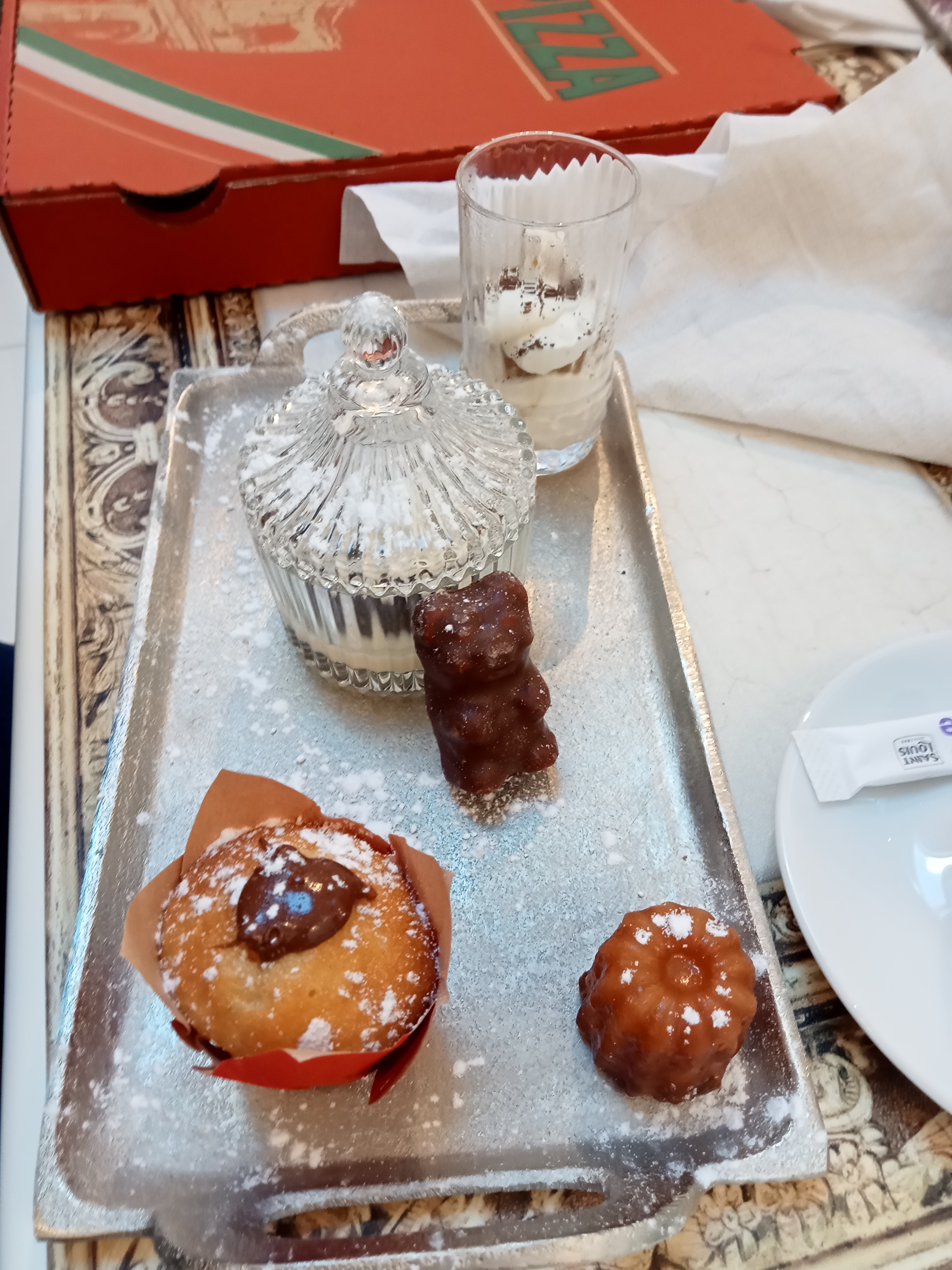 Pizza délicieuse et nouveau service de livraison super précis niveau horaires et les désert sont aussi délicieux