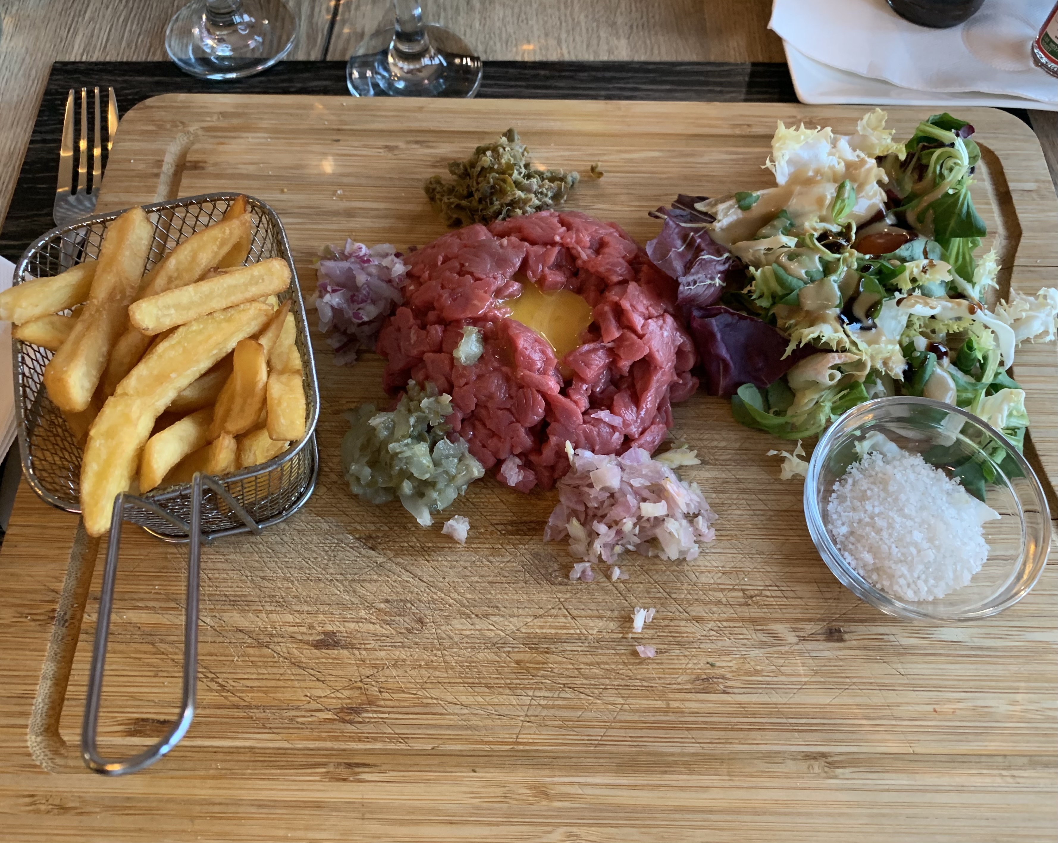 Une très bonne expérience à renouveler, un vrai tartare qui ne ressemble pas à de la bouillie et qui fond dans la bouche. La viande est dans une vitrine réfrigérée aux vues de tous. La bavette avec une cuisson à point très tendre et les accompagnements de qualité. Soucie du personnel savoir si tout ce passe bien. Décors agréable. Je reviendrai sans hésiter 😁