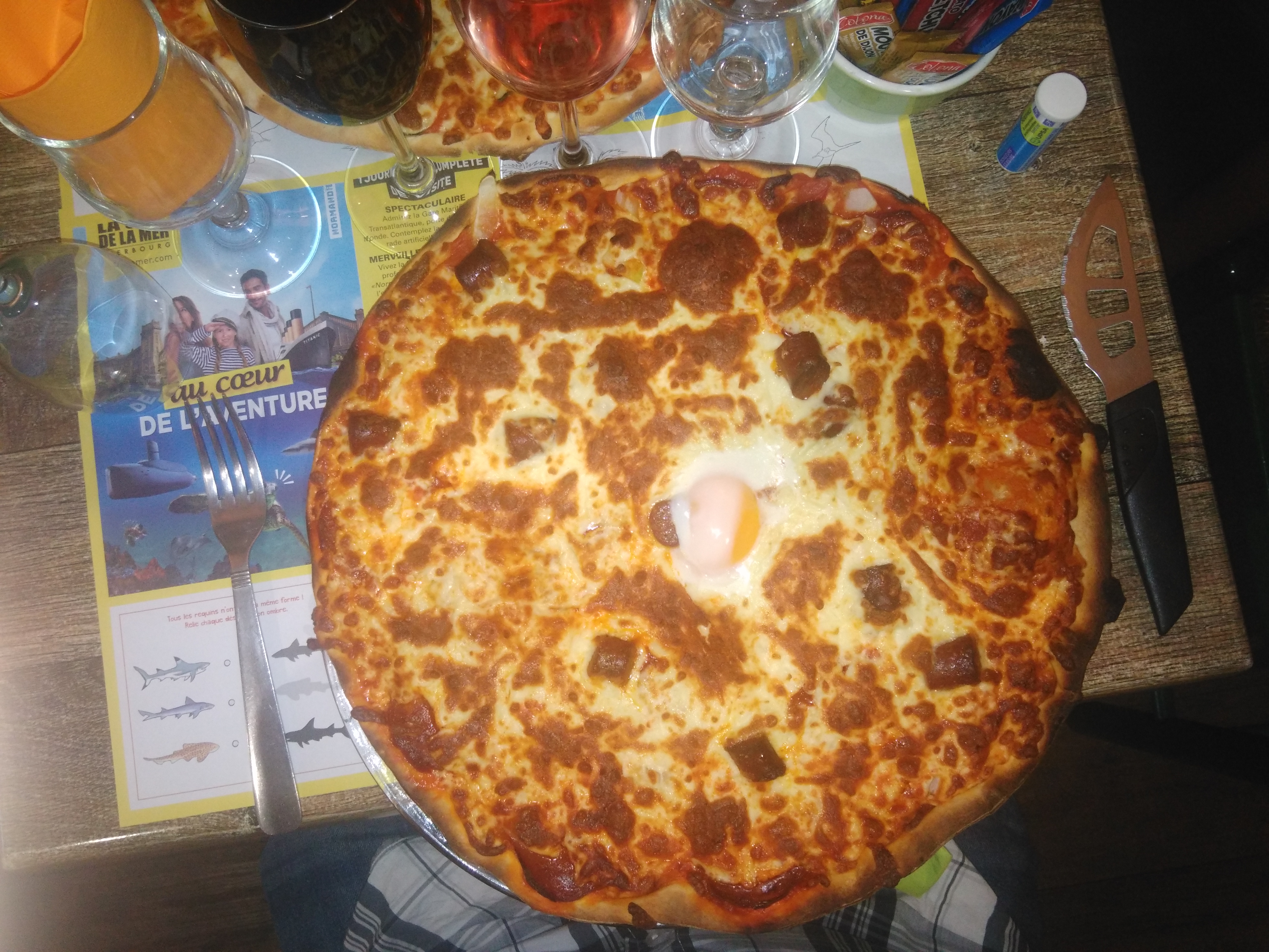 Bonjour, Les pizzas sont a eviter, elles sont faites a base de produit surgelés. J ai pris une pizza aux fruits de mer, j ai ete malade toute la nuit. La pate aussi etait seche et s effritait, aucun goût. A déconseiller