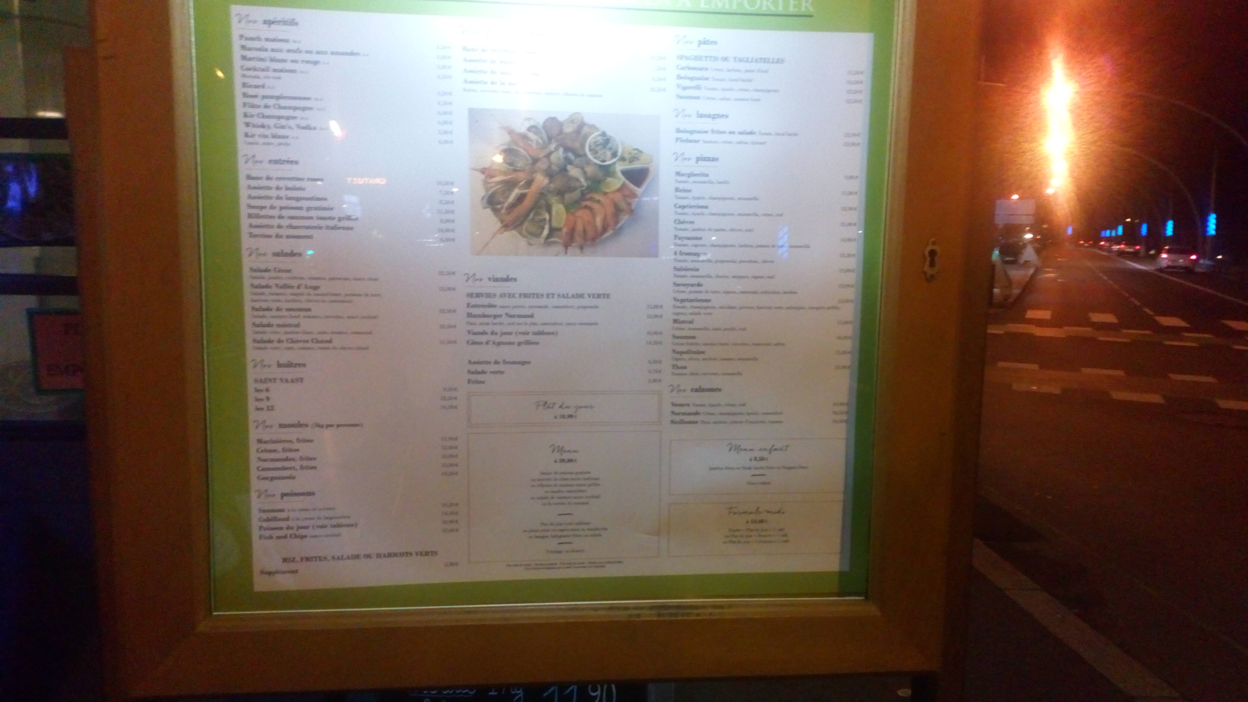 Trouver un restaurant le dimanche soir à Cherbourg en septembre est un sacré défi. On s’est rabattu sur le Mistral et franchement pas terrible : poisson correcte et un dessert surgelé.