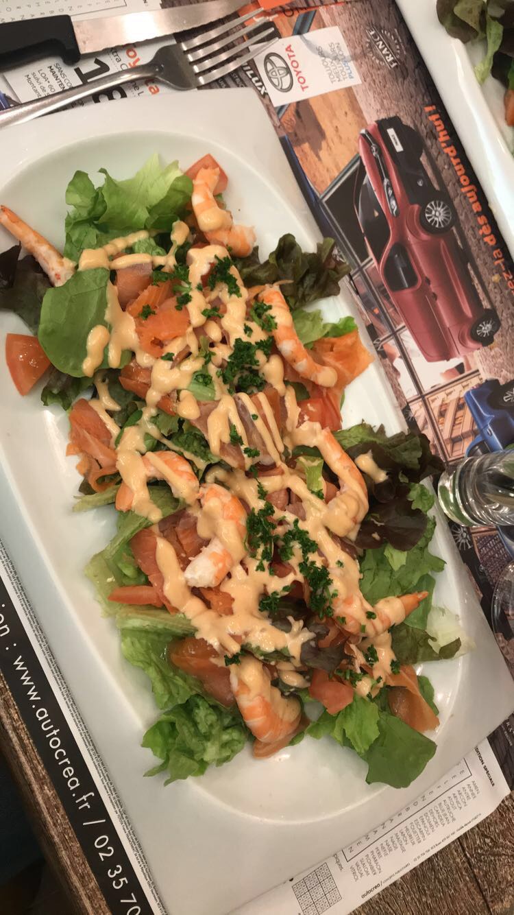 En déplacement professionnel pour un diner le soir avec des collègues. Ensemble du repas correct et accueil plutôt sympathique. J'avais pris une assiette de la mer qui était correcte avec un verre de vin et je ne me souviens plus si j'ai pris un dessert ou non.
