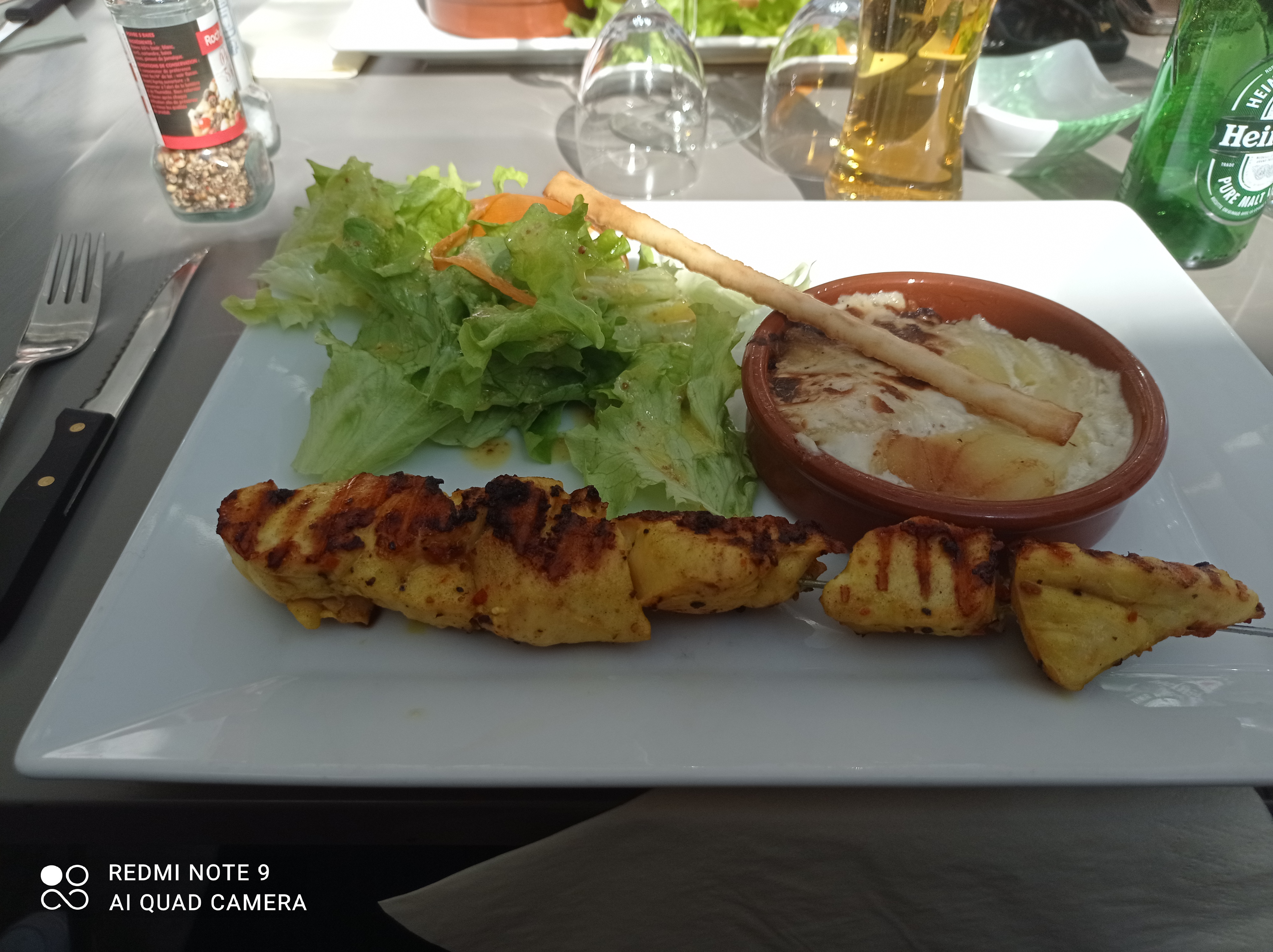Brochette d'agneau d'excellente qualité...exquise...gratin dauphinois maison succulent 🤩 moelleux au chocolat délicieux 🔥