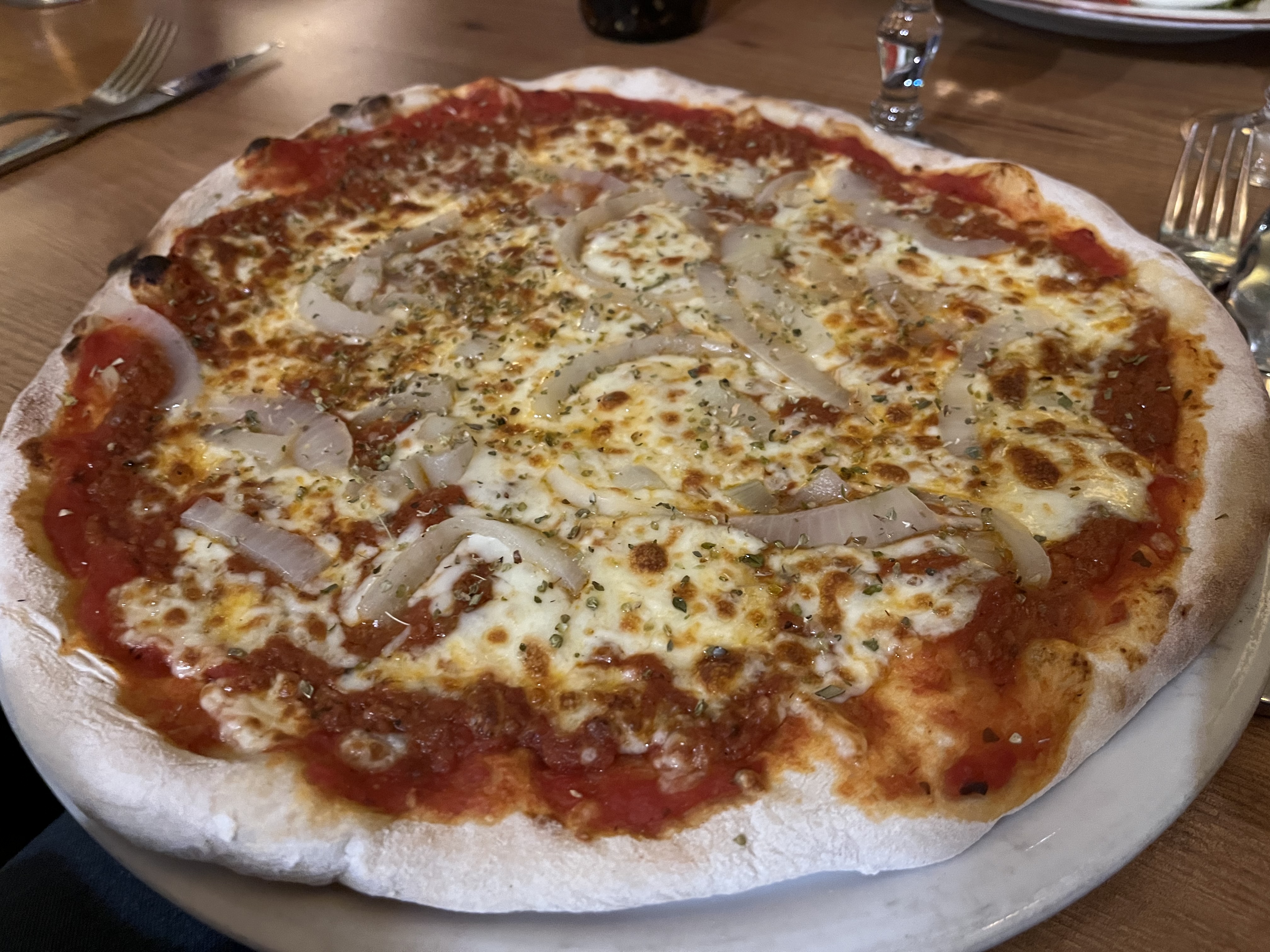 Une pizza au feu de bois délicieuse dans un cadre charmant, merci pour ce très bon repas !